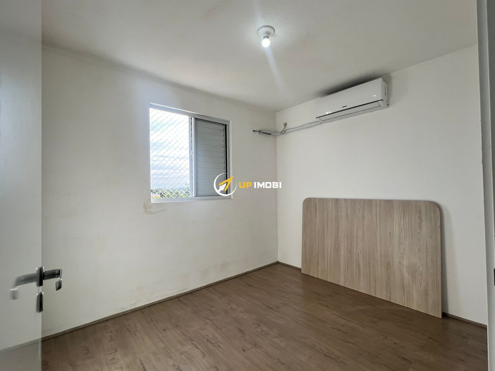 Apartamento semimobiliado com piso em porcelanato, ar condicionado no quarto e aquecimento a gás.