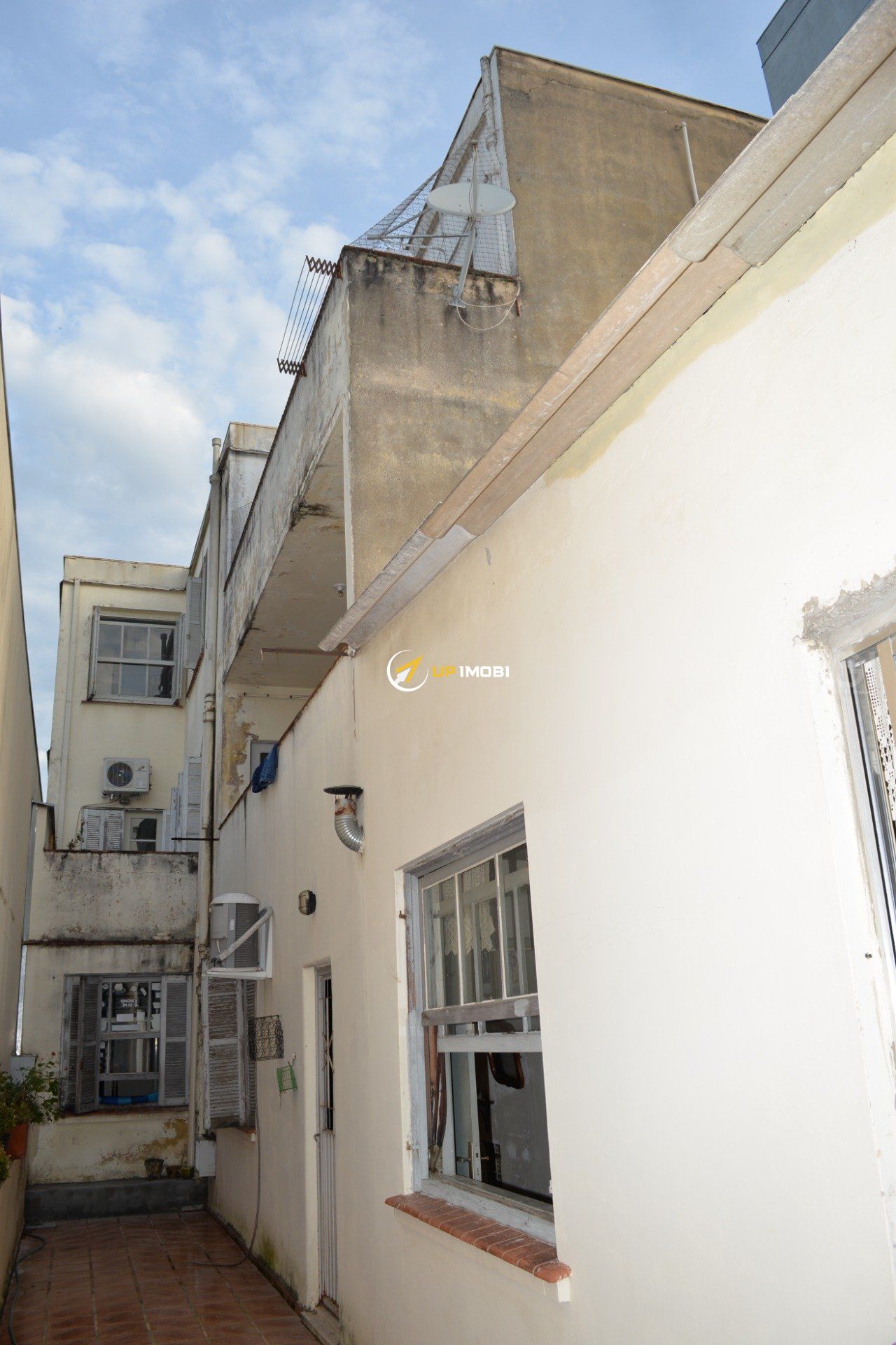 Ampla área tipo pátio nos fundos do prédio que tem acesso pelo apartamento localizado no primeiro andar.