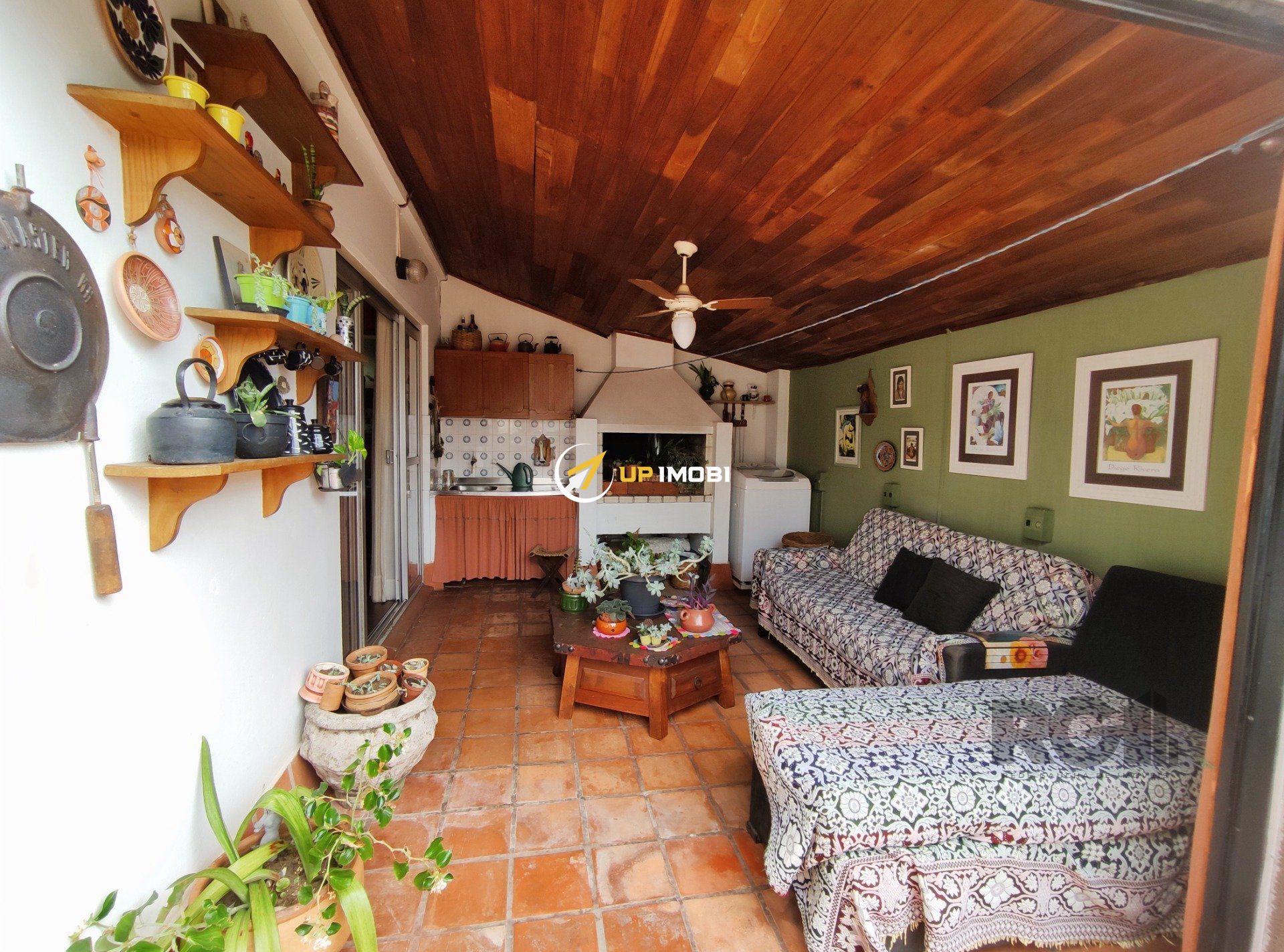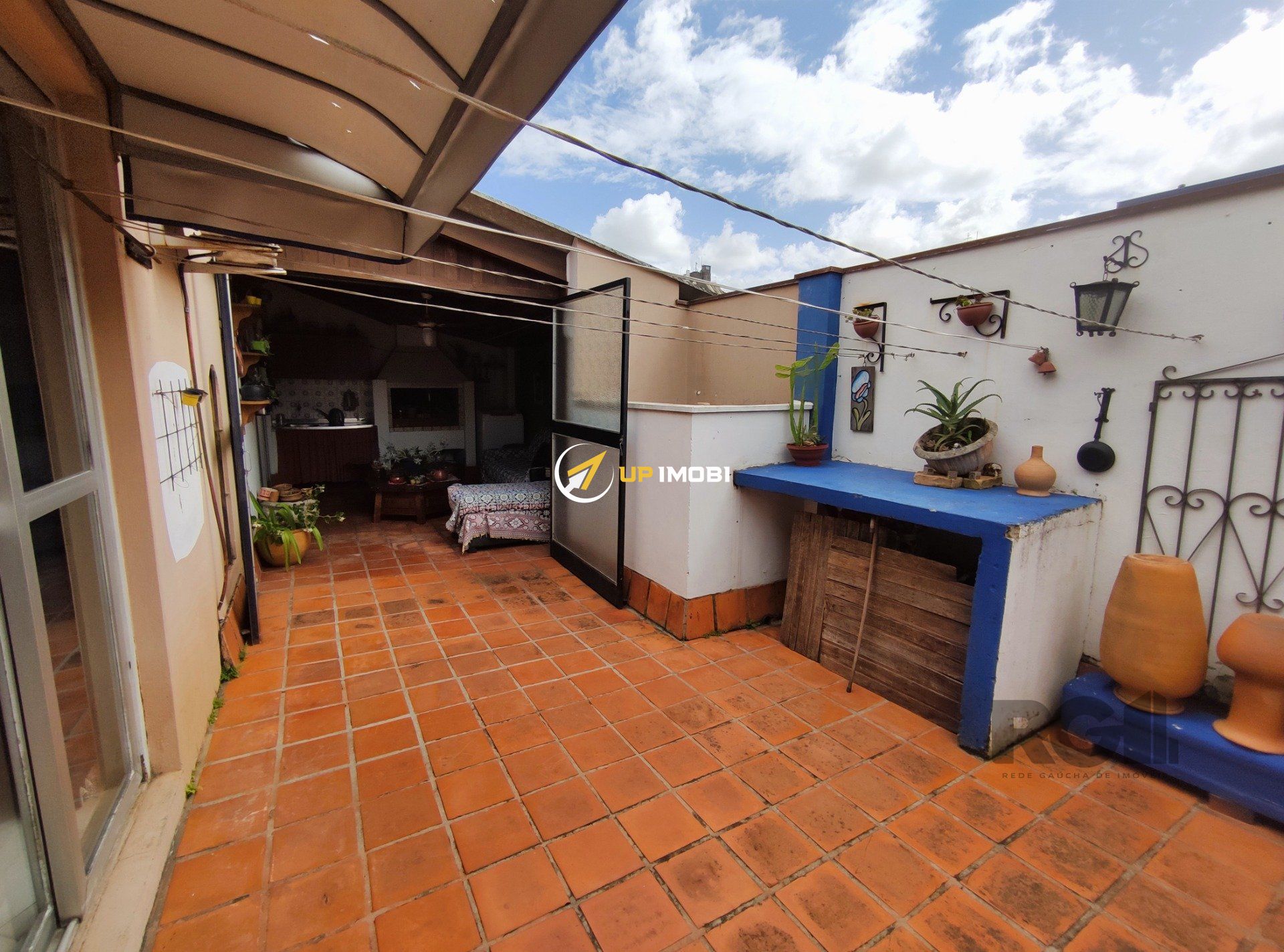 Na cobertura estão quatro espaços distintos, sendo uma sala, um escritório, um espaço coberto com churrasqueira, uma área aberta e um banheiro social.