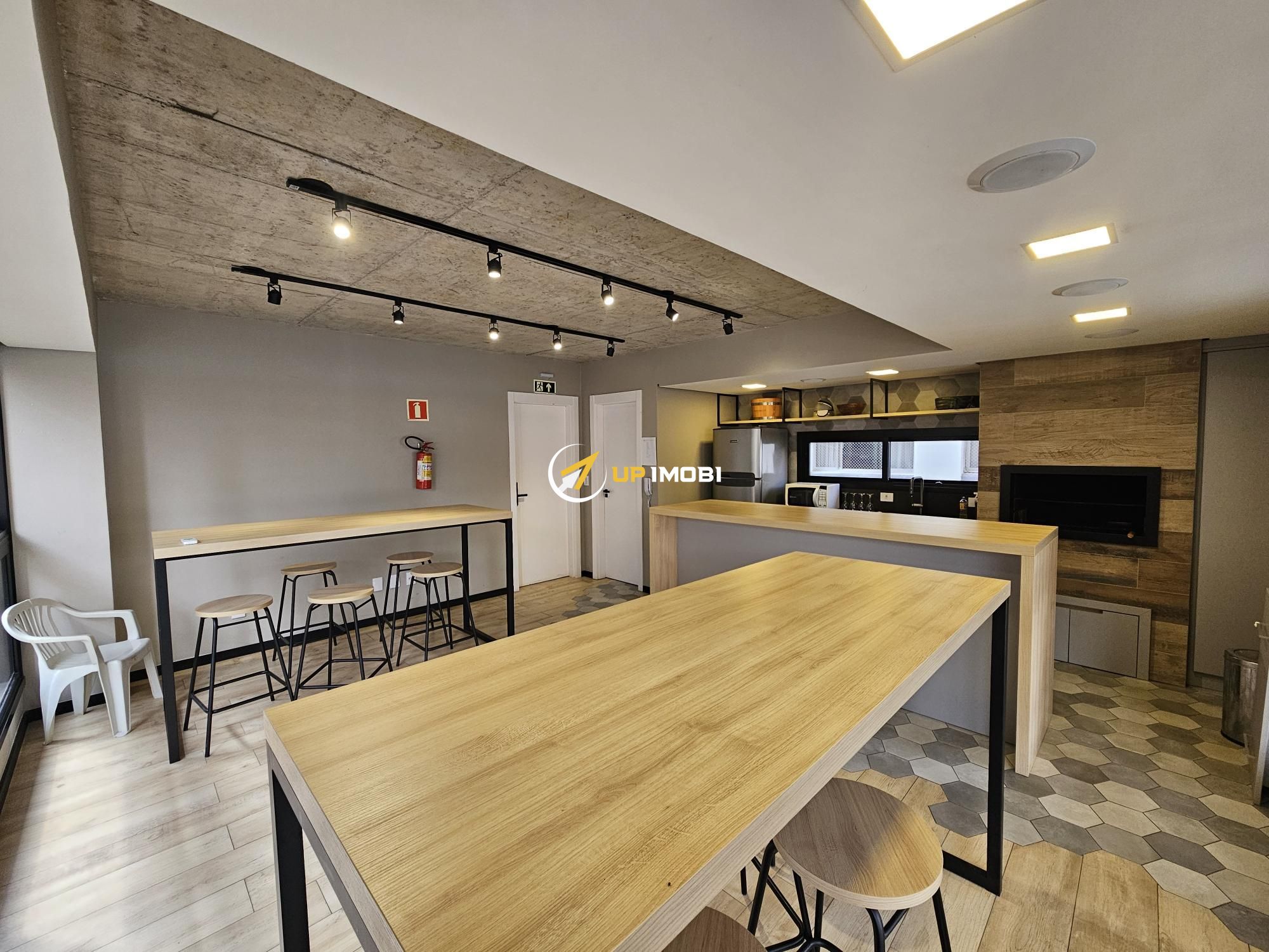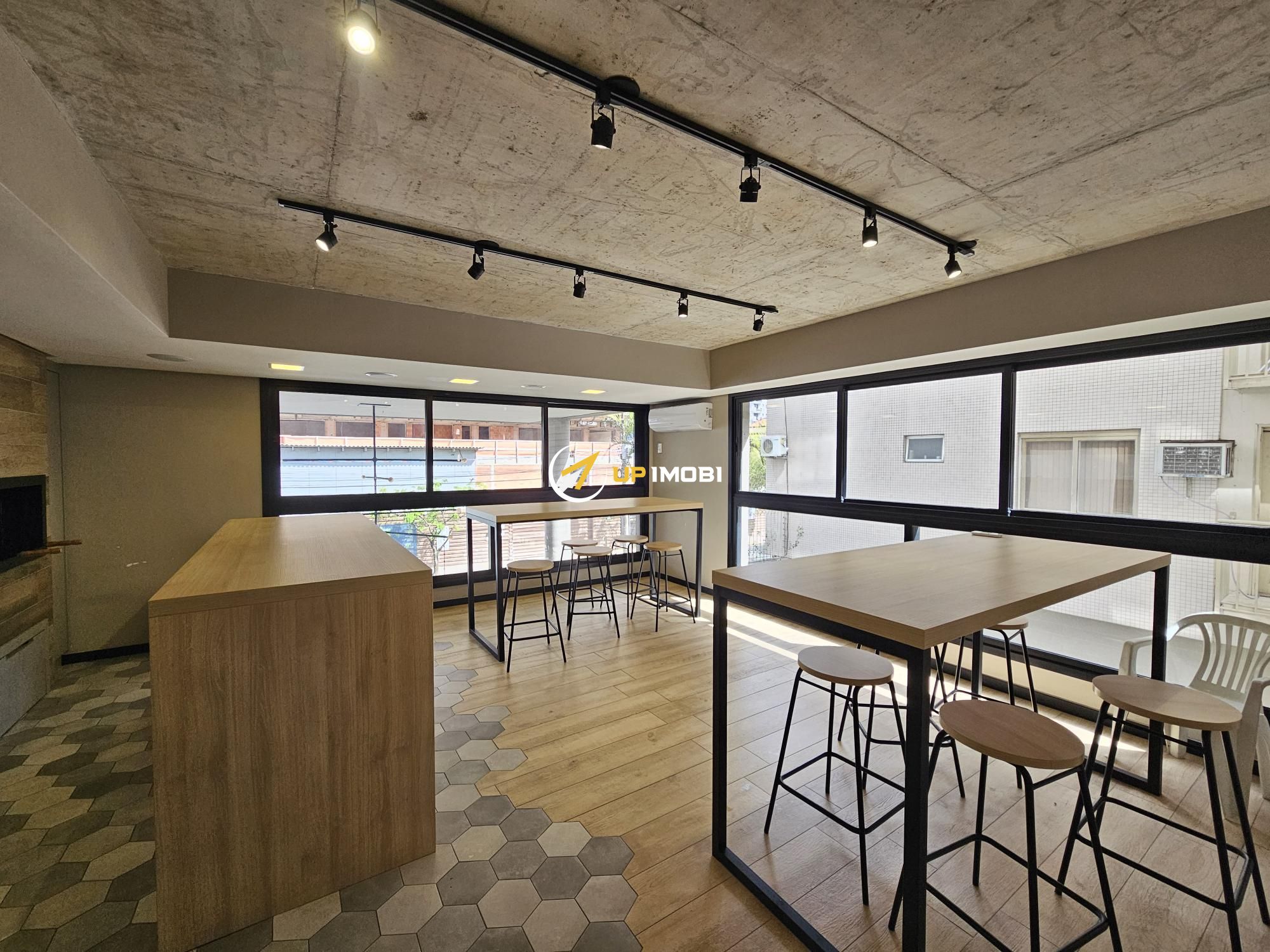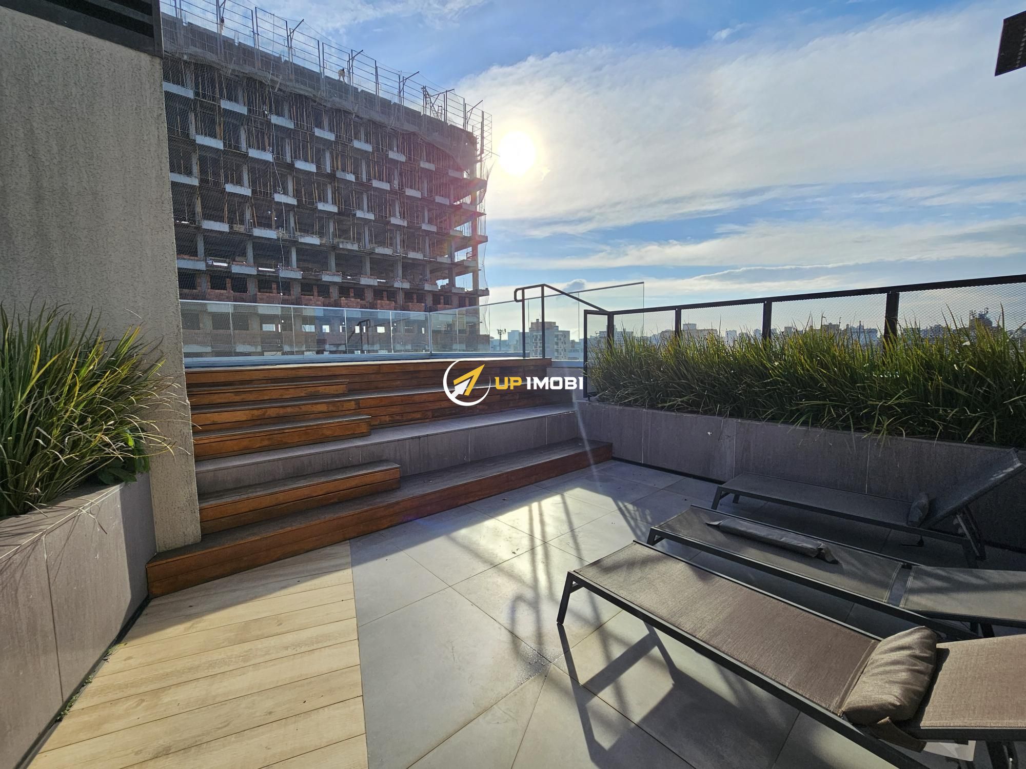Lindo apartamento tipo studio com 43m2 privativos, 100% mobiliado (era o decorado da construtora). Ampla janela no living, vista definida, sol norte e churrasqueira. Vaga dupla de garagem. Edifício com painéis solares, salão de festas, academia, terraço com parrilla e piscina.