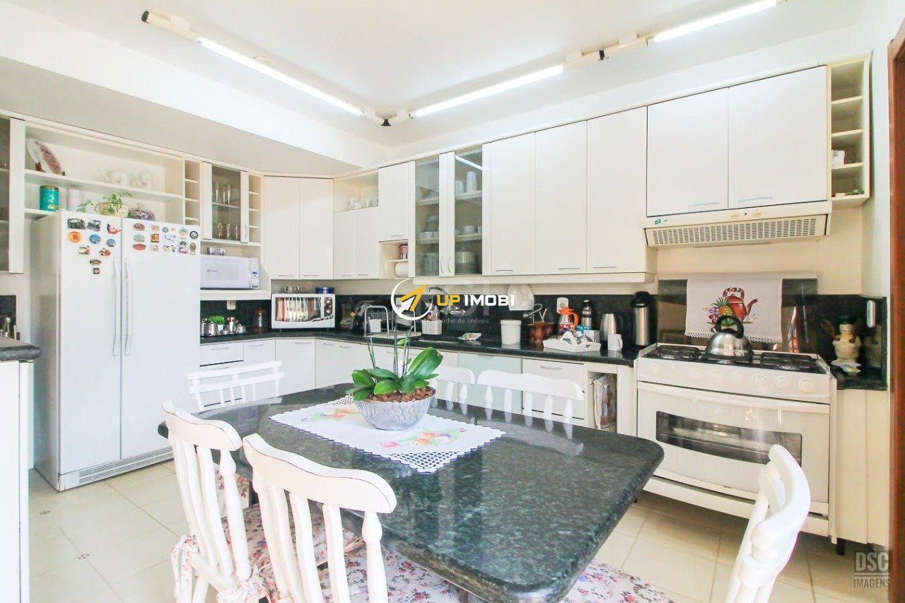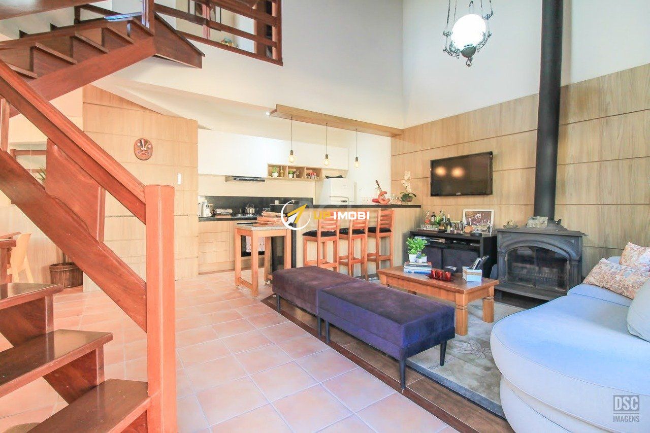 Living com linda lareira, sala de jantar integrada, lavabo, salinha de TV, ampla copa cozinha, dependência de empregada, garagem coberta para 2 carros e 2 vagas descobertas.