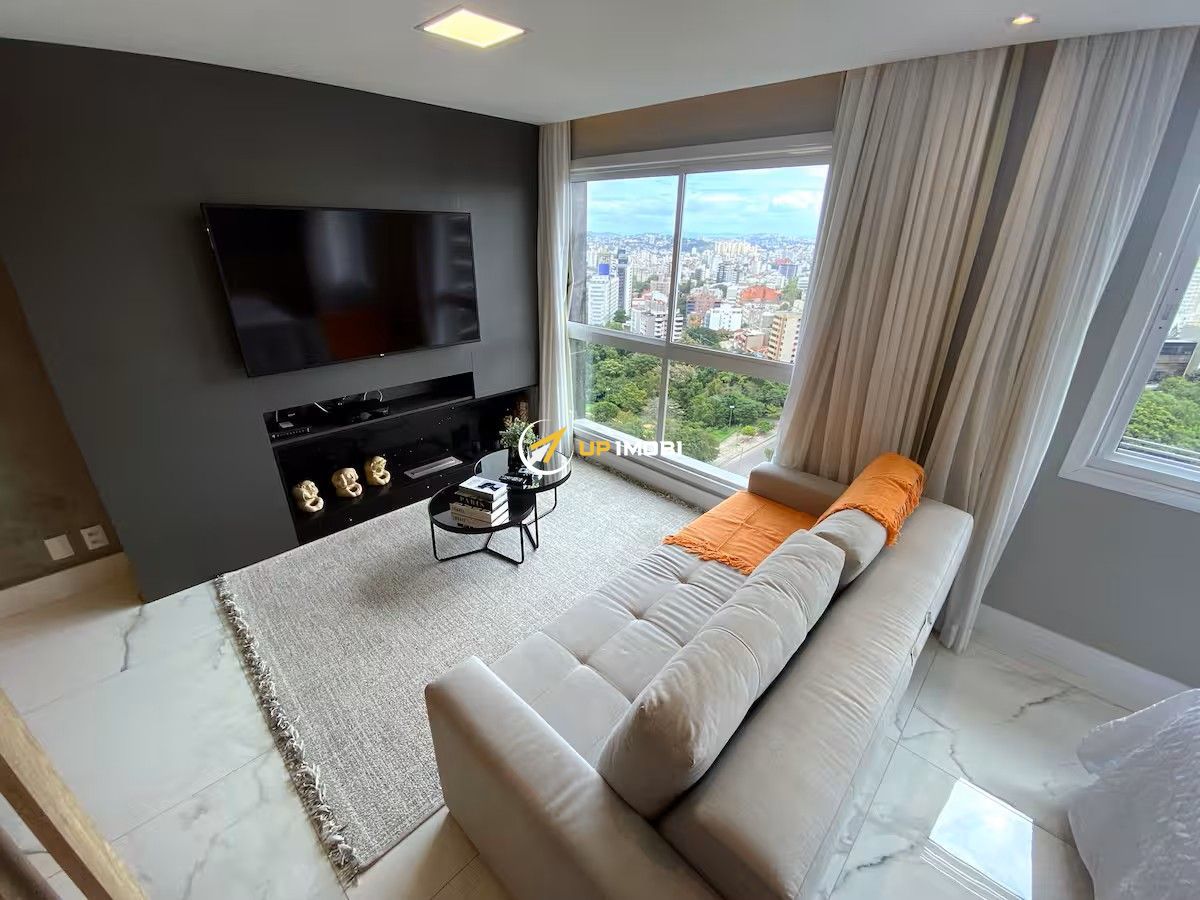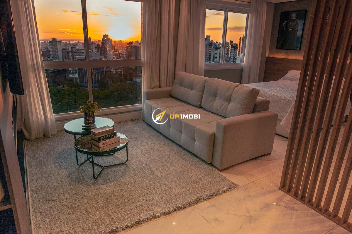 Explore o luxo e o conforto neste incrível apartamento no ponto mais alto da cidade de Porto Alegre/RS. Desfrute da vista mais incrível que se poderia imaginar neste estúdio de 45m² no último andar. Com um design sofisticado, acabamentos premium, como o piso em porcelanato classe A, marcenaria de alta qualidade, paredes em ripado, projeto de som ambiente em todo apartamento, e de iluminação exclusivo, este imóvel oferece conforto e comodidade. Marcenaria em laca preta com cristaleira que separa os ambientes, sistema de TV 360o e lareira ecológica á álcool. No dormitório a vista é incrível, pode se ver o por do sol da cama, uma box baú king size com cabeceira em veludo preto, split preto e ventilador de teto. E um belíssimo guarda roupas com sapateira. Cozinha completa com geladeira, micro-ondas e exaustor inox, coocktop 4 bocas, forno elétrico, churrasqueira á carvão e sala de jantar com mesa em vidro branco para 4 lugares. Ainda conta com um armário depósito piso teto, junto á lavanderia com máquina lava e seca. O banheiro lindíssimo com pia em pedra branca e revestimento de porcelanato do piso ao teto em marrom cromo, box de vidro. O apartamento é completo e impecável, proporcionando uma experiência única. Vaga de garagem coberta para 1 carro, com acesso pelo edifício garagem com segurança 24h. Este imóvel não só é ideal para moradia, mas também pode ser uma excelente fonte de renda através do Airbnb. A posição solar privilegiada oferece uma vista deslumbrante para o pôr do sol do Guaíba, estando localizado no 19º andar. O apartamento foi cuidadosamente decorado para proporcionar o máximo de conforto. Não perca a oportunidade de viver com estilo no Axis Home, um empreendimento com infraestrutura completa que inclui portaria 24 horas e mais: 2 elevadores de acesso aos apartamentos; Espaço gourmet com churrasqueira; Academia; Praça e Sollarium; Piscina externa; Piscina interna aquecida; Port cochere com portaria 24 horas; Interfone; Lavanderia compartilhada com espaço de coworking; Restaurante e cafeteria no Axis Office; Estacionamento para visitantes e vagas extras para os proprietários (pay-per-use). Sua localização é imbatível, situada na área mais nobre e elevada do Bairro Petrópolis em Porto Alegre/RS, em frente a uma praça com quadras esportivas e equipamentos de ginástica, com feirinha ecológica todas as sextas-feiras. Ao lado das prestigiadas Avenidas Carlos Gomes e Protásio Alves. O acesso é fácil e conveniente para quem chega pelo aeroporto ou pelas principais vias. Além disso, a posição estratégica permite estar a poucos minutos de universidades, shopping centers, hipermercados, hospitais e escolas, bem como do tradicional Jardim Botânico da região de maior desenvolvimento na Nova Carlos Gomes, proporcionando uma conexão rápida e fácil a qualquer ponto da cidade de Porto Alegre. Não perca tempo, agende agora sua visita! Não. Preço e disponibilidade do imóvel sujeitos a alteração sem aviso prévio.