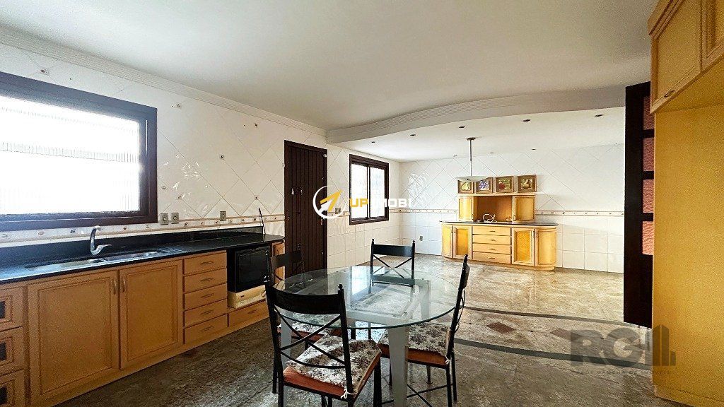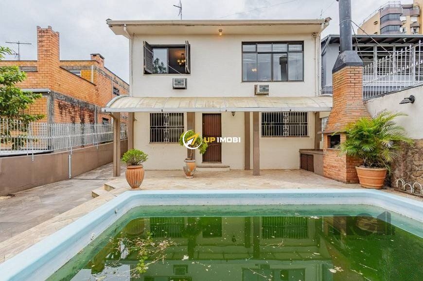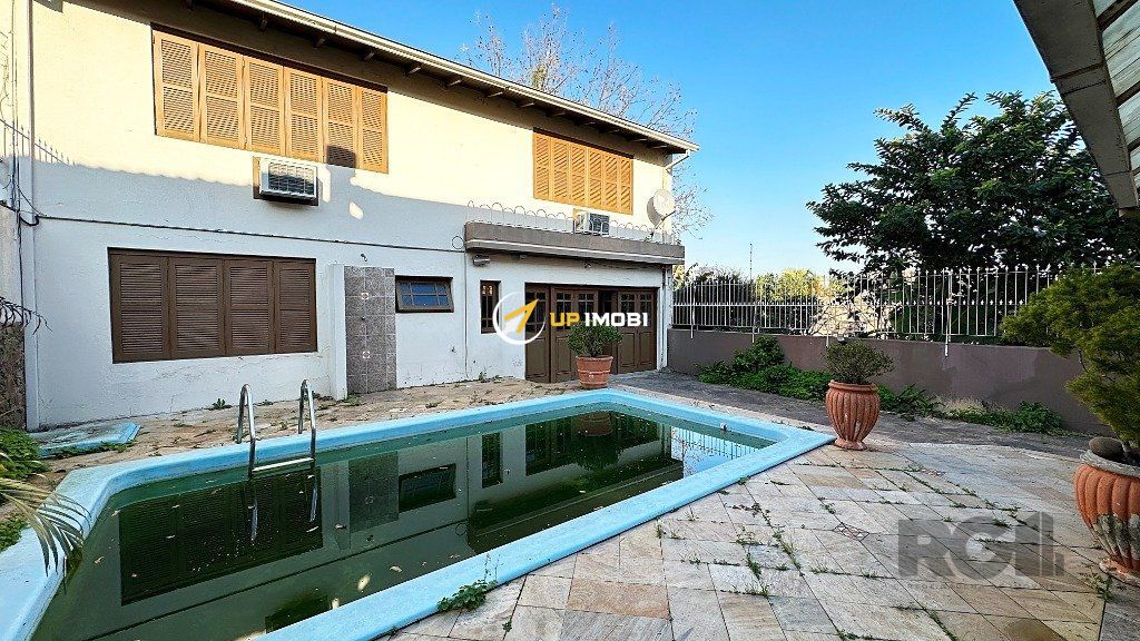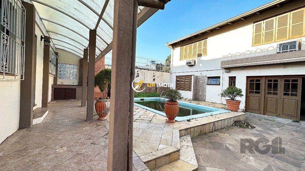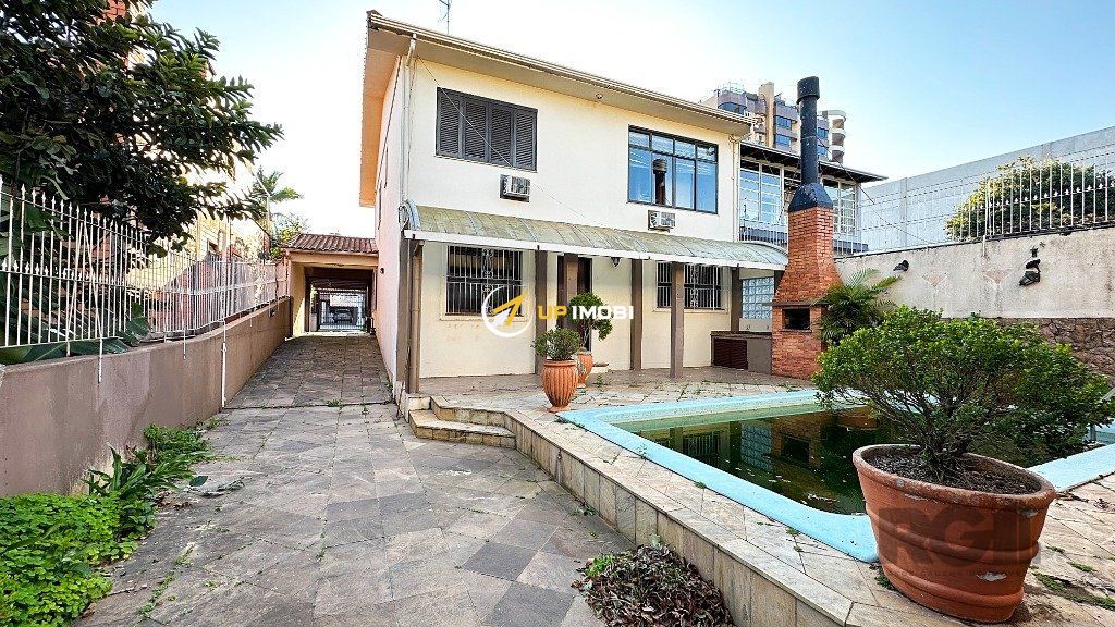 São 245m² distribuídos em um amplo living para dois ambientes com lareira, 3 dormitórios sendo 1 suíte com sacada, cozinha ampla, lavanderia, despensa, espaço gourmet com churrasqueira, pátio com piscina e garagem para 2 vagas cobertas. Possui nos fundos um sobrado de 106m² com 1 dormitório, living e banheiro.