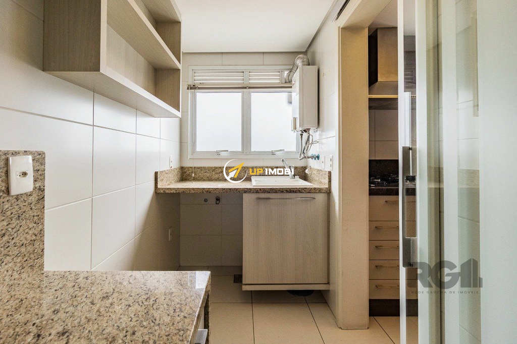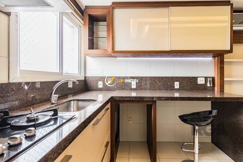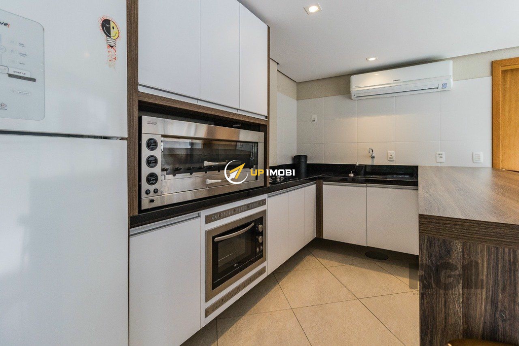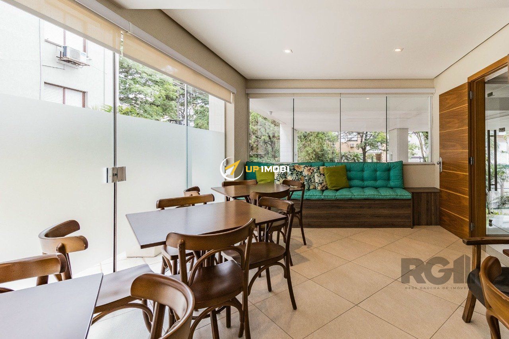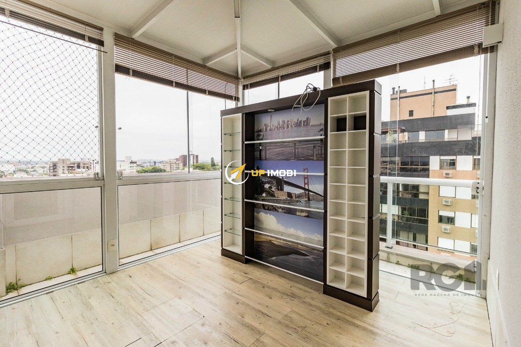 Cobertura de um dormitório, suíte , escritório com banheiro, salão de festa ,lateira semi mobiliada e três vagas de garagem mais depósito, no bairro São João em Porto Alegre.