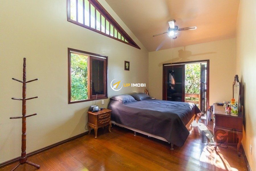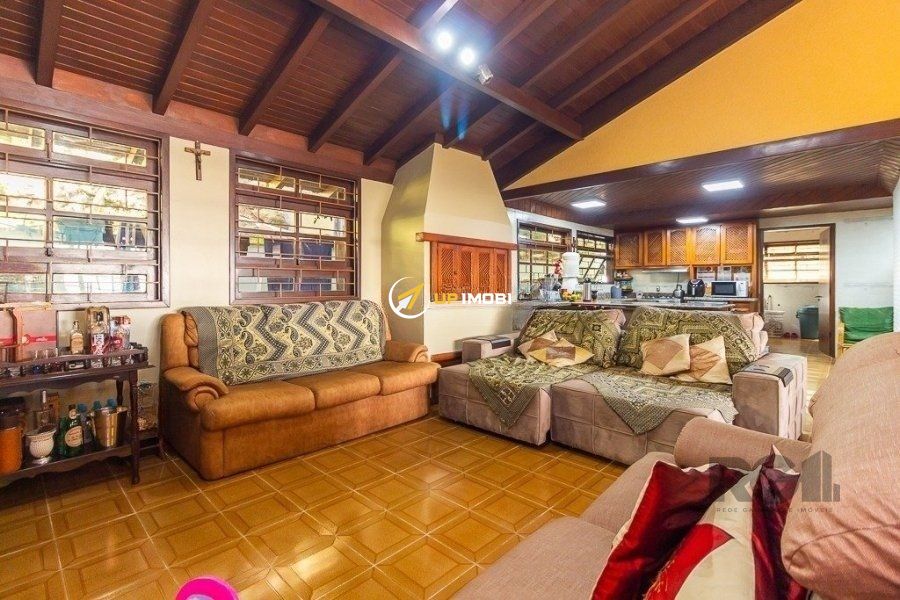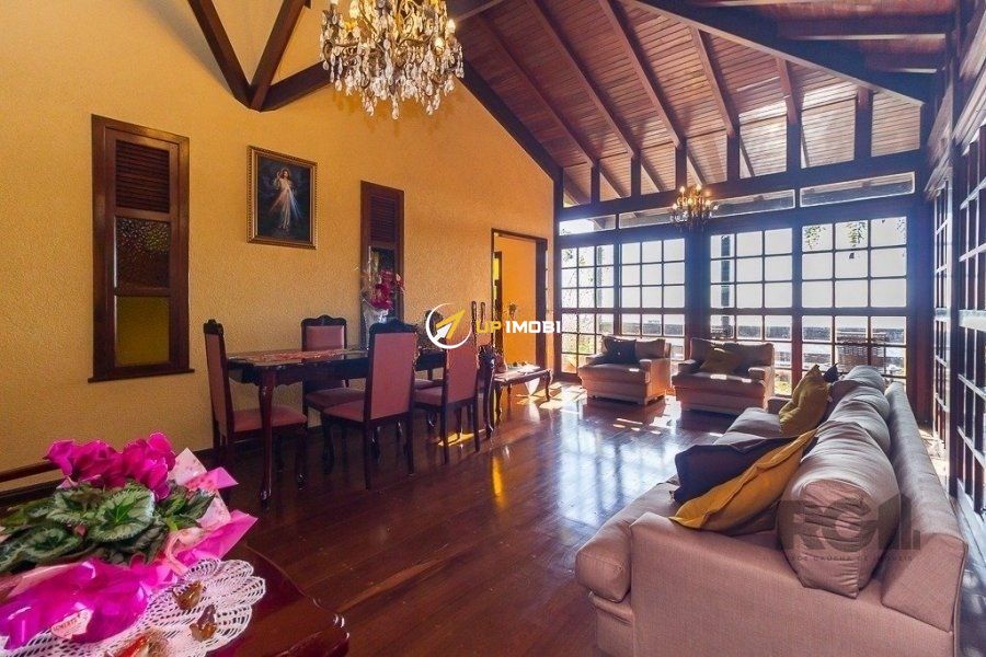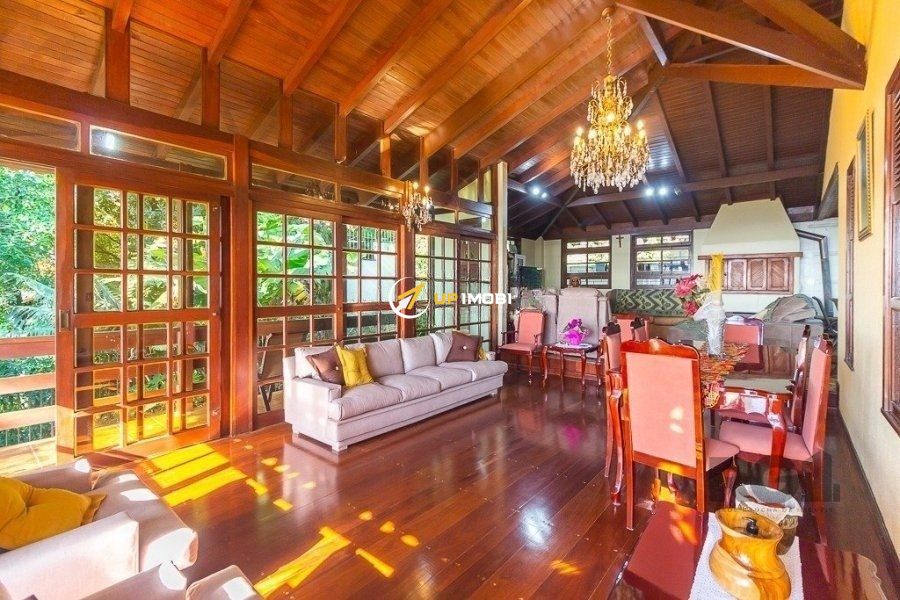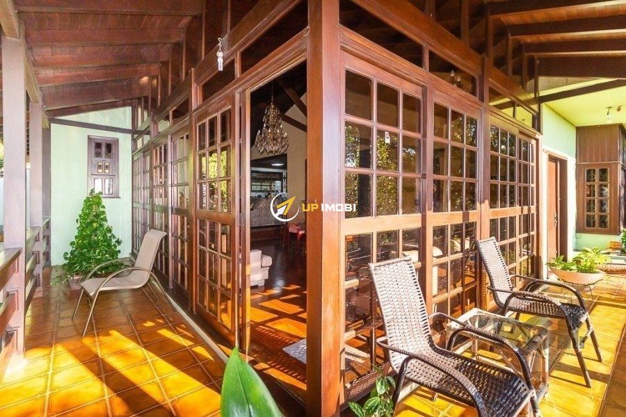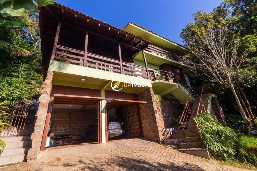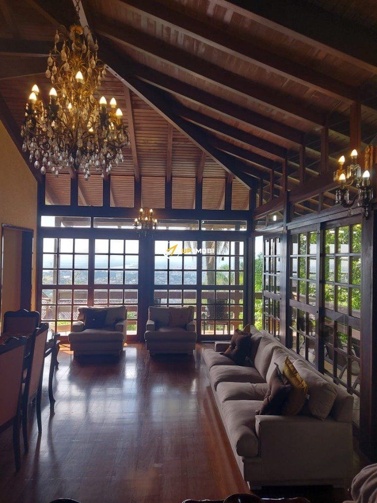 Excelente casa com três pavimentos em bairro tranquilo, arborizado, com excelente vista da cidade. Sala de estar, jantar e cozinha integrados, piso de madeira maciça ipê na sala e nos quartos, forro de madeira em cedro nas áreas comuns. Imóvel com pé direito alto, portas e janelas amplas, bem iluminado, com sacadas na área social e quartos. Possui adega e área de depósito no subsolo, ao lado de 2 vagas cobertas de garagem e 2 vagas descobertas. Hall de entrada amplo, com chapelaria e escritório com banheiro completo (conversível em suite térrea). Área de serviço com DCE e armários. Pavimento superior reservado à área íntima, com 4 quartos grandes, sendo um destes a suite casal. Área de lazer privativa, possuindo piscina, salão de festas com churrasqueira, forno e fogão a lenha. Terreno de 1.000 m2 com árvores frutíferas e paisagismo. Bairro monitorado por câmeras e segurança 24 horas, possui a opção de salão de festas na associação de moradores.Sala de estar, jantar e cozinha integrados, piso de madeira maciça ipê na sala e nos quartos, forro de madeira em cedro nas áreas comuns. Imóvel com ipé direito alto, portas e janelas amplas, bem iluminado, com sacadas na área social e quartos. Possui adega e área de depósito no subsolo, ao lado de 2 vagas cobertas de garagem e 2 vagas descobertas. Hall de entrada amplo, com chapelaria e escritório com banheiro completo (conversível em suite térrea). Área de serviço com DCE e armários. Pavimento superior reservado à área íntima, com 4 quartos grandes, sendo um destes a suite casal. Área de lazer privativa, possuindo piscina, salão de festas com churrasqueira, forno e fogão a lenha. Terreno de 1.000 m2 com árvores frutíferas e paisagismo. Bairro monitorado por câmeras e segurança 24 horas, possui a opção de salão de festas na associação de moradores.