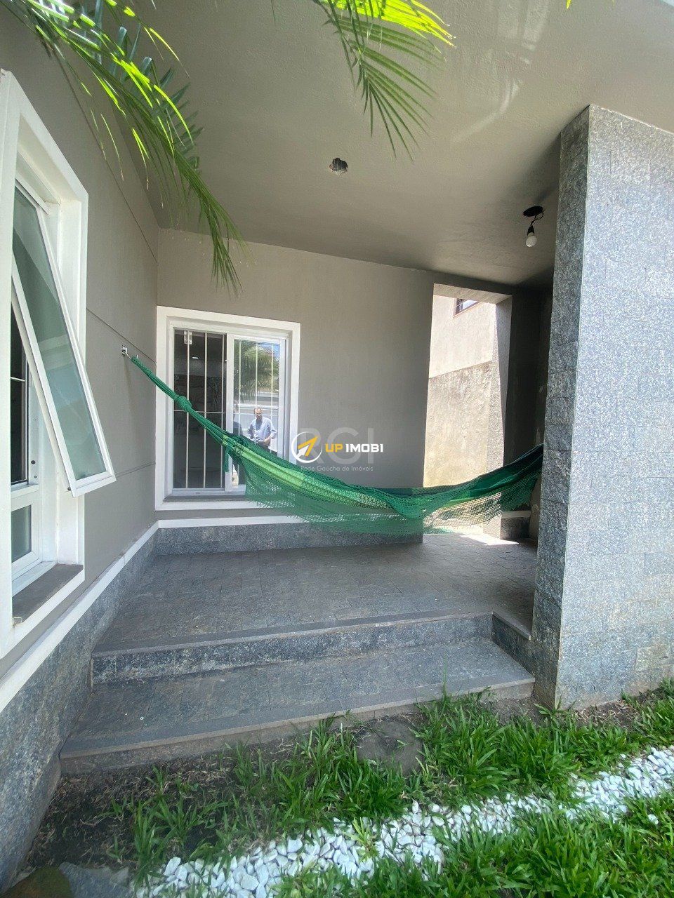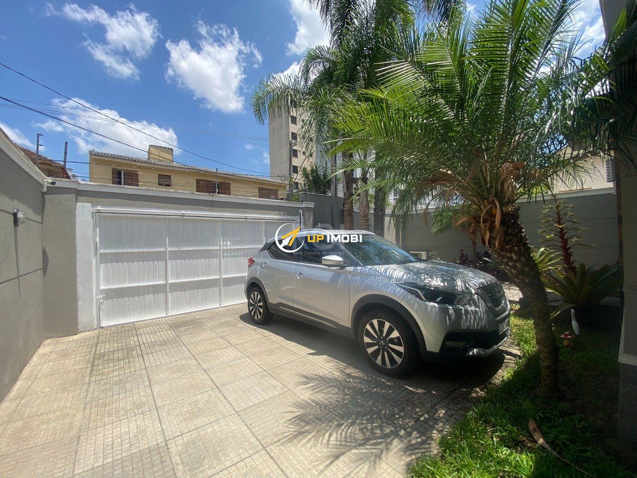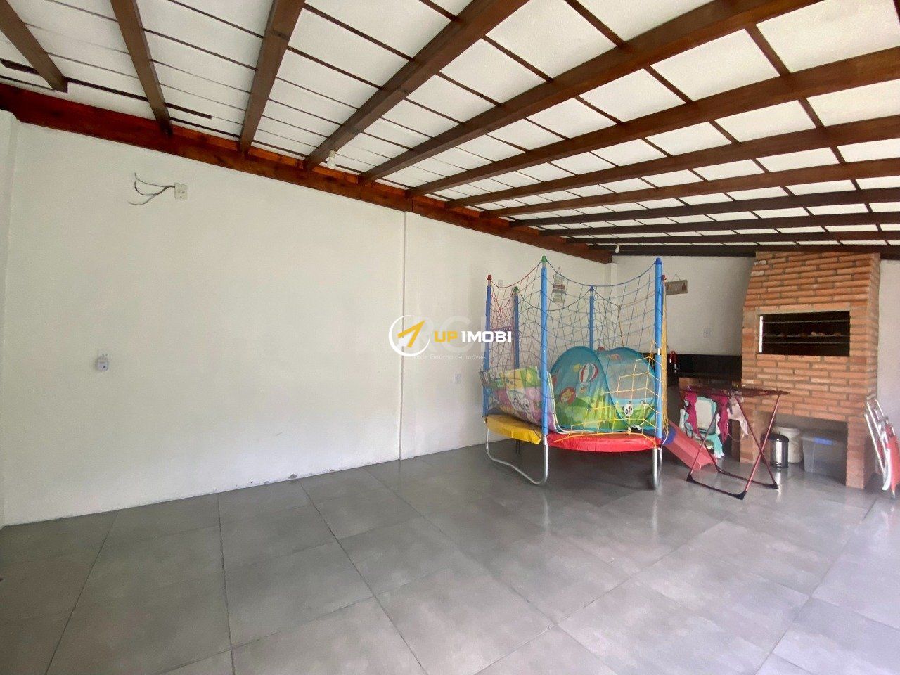 A Casa possui pátios laterais, e pátio atrás com área fechada com churrasqueira e área aberra com grama.