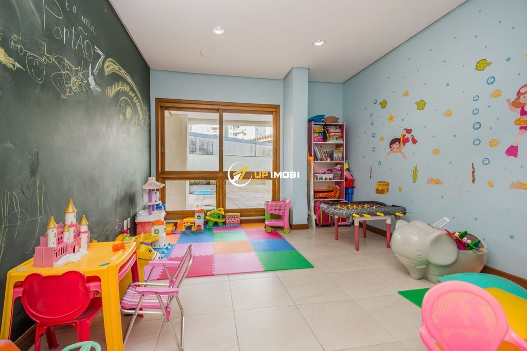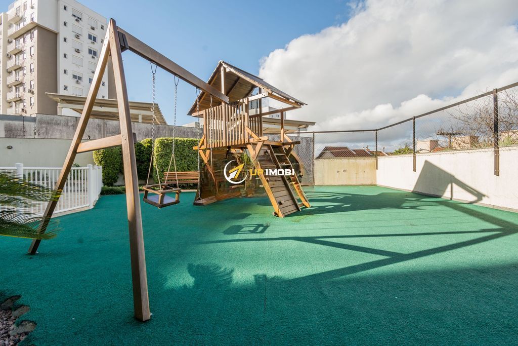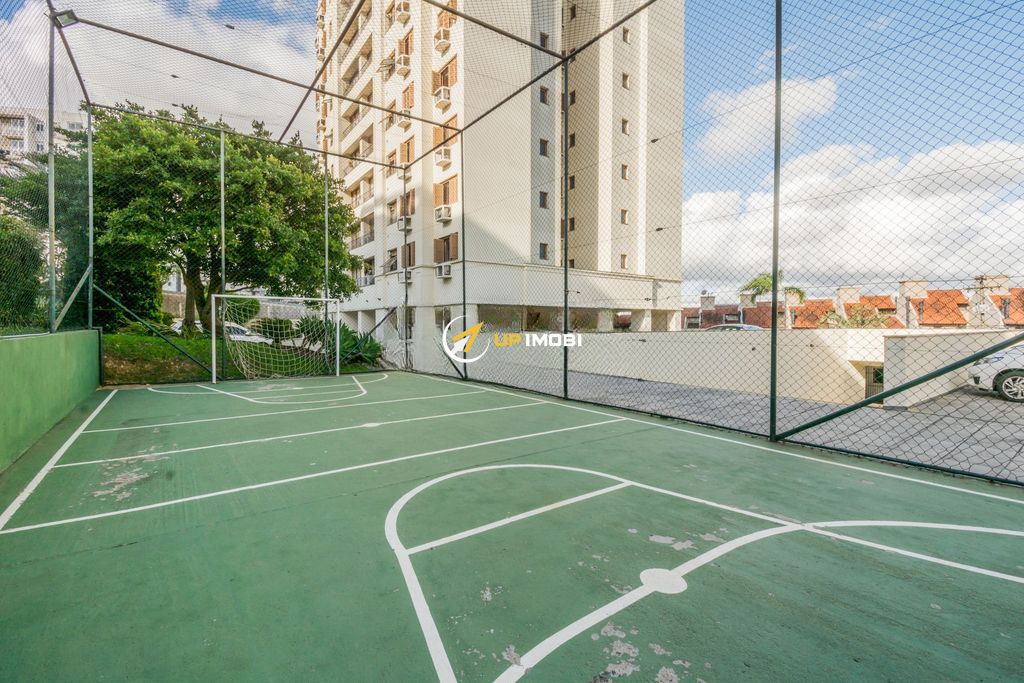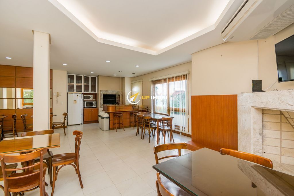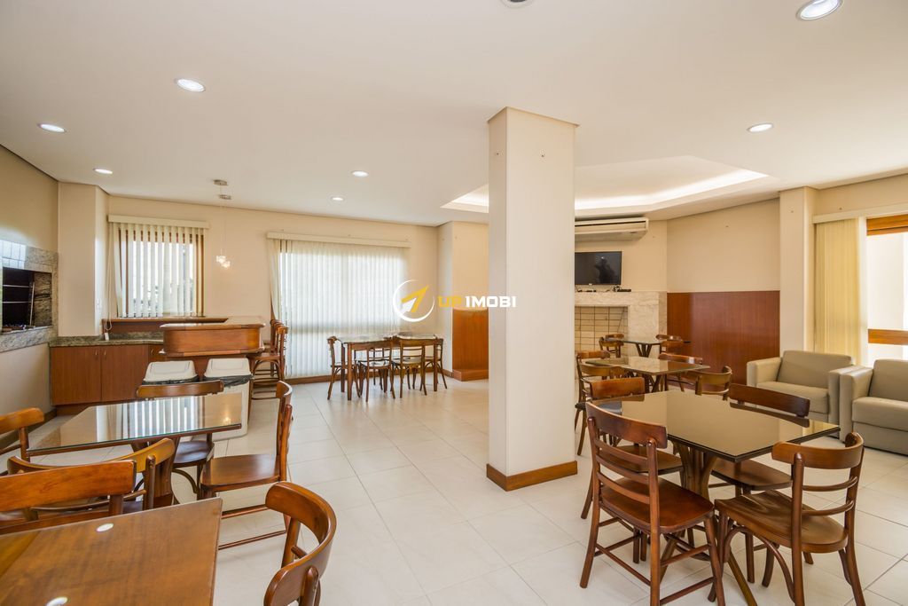 Apartamento semi-mobiliado no Condomínio Vista Alegre, com 87 m² privativos, 3 dormitórios (1 suíte), amplo living com lareira a gás e churrasqueira, banheiro social, andar alto e 2 vagas separadas.