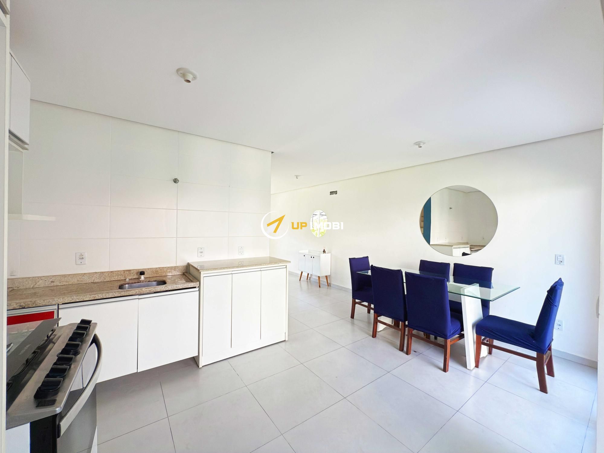 Conta com living, lavabo, cozinha americana e área de serviço completa.