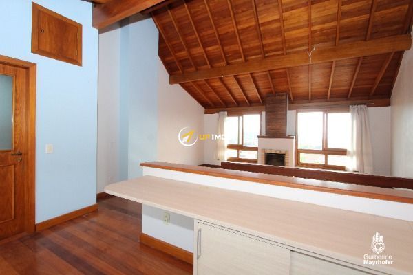 A casa possui 3 dormitórios, sendo 1 suíte com closet, banheiro social, cozinha mobiliada, estar com lareira e sacada. Garagem fechada com duas vagas, lavanderia e um amplo sótão com lareira, lavabo, home office, sacada e uma vista deslumbrante do mais lindo pôr do sol da cidade.