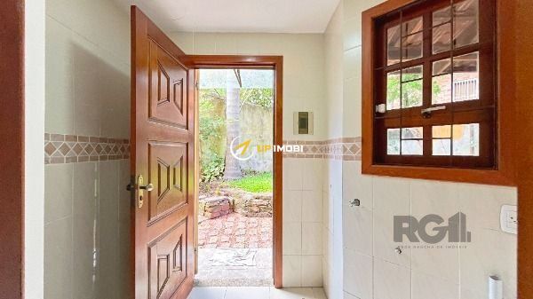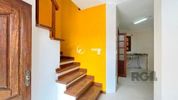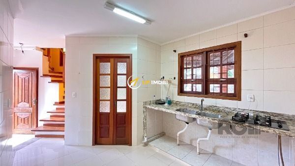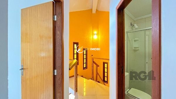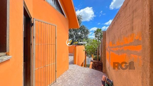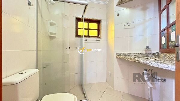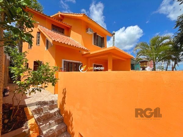 Sobrado a venda, na Lomba do Pinheiro, com 143 m², dois quartos, banheiro (preparado pra receber banheira de hidromassagem) e lavabo, ampla cozinha, sacada no quarto principal, quiosque e garagem para dois veículos. Piso de porcelanato retificado, pias e guardas em granito falésia, além de madeiras nobres (aberturas em angelim ou cedro mara, escada em grápia e peroba rosa, quiosque em peroba rosa e cedro rosa), água fria e quente e caixa d'água em concreto para 1.200 l. Ampla área externa, bem planejada, com área verde, corredor lateral e avarandado sobre a garagem (25 m²). A casa possui, ainda, lareira, quiosque com churrasqueira e pia de inox, além de muros com 2,2 m de altura e grades.