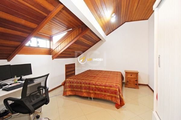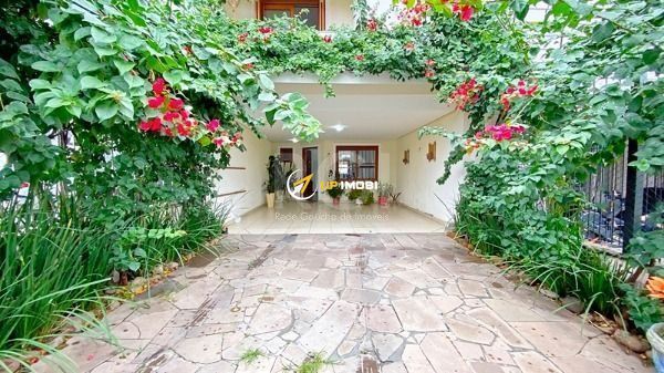 À venda Belíssima casa, tipo sobrado, bairro Guarujá, de ótima arquitetura e acabamento em gesso. Garagem para 04 vagas,sala com lareira, lavabo, cozinha americana mobiliada, área coberta com churrasqueira e lavanderia em amplo pátio aberto, três dormitórios, sendo uma suíte, piso laminado e banheiro social, living dois ambientes. Sótão com ampla área fechada, banheiro e sacada com vista para o Guaíba, piso em porcelanato. Possibilidade para para escritório, dormitório ou estar íntimo. Próximo aos principais recursos do bairro, com supermercados e Santuário Santa Rita. Agende sua visita.