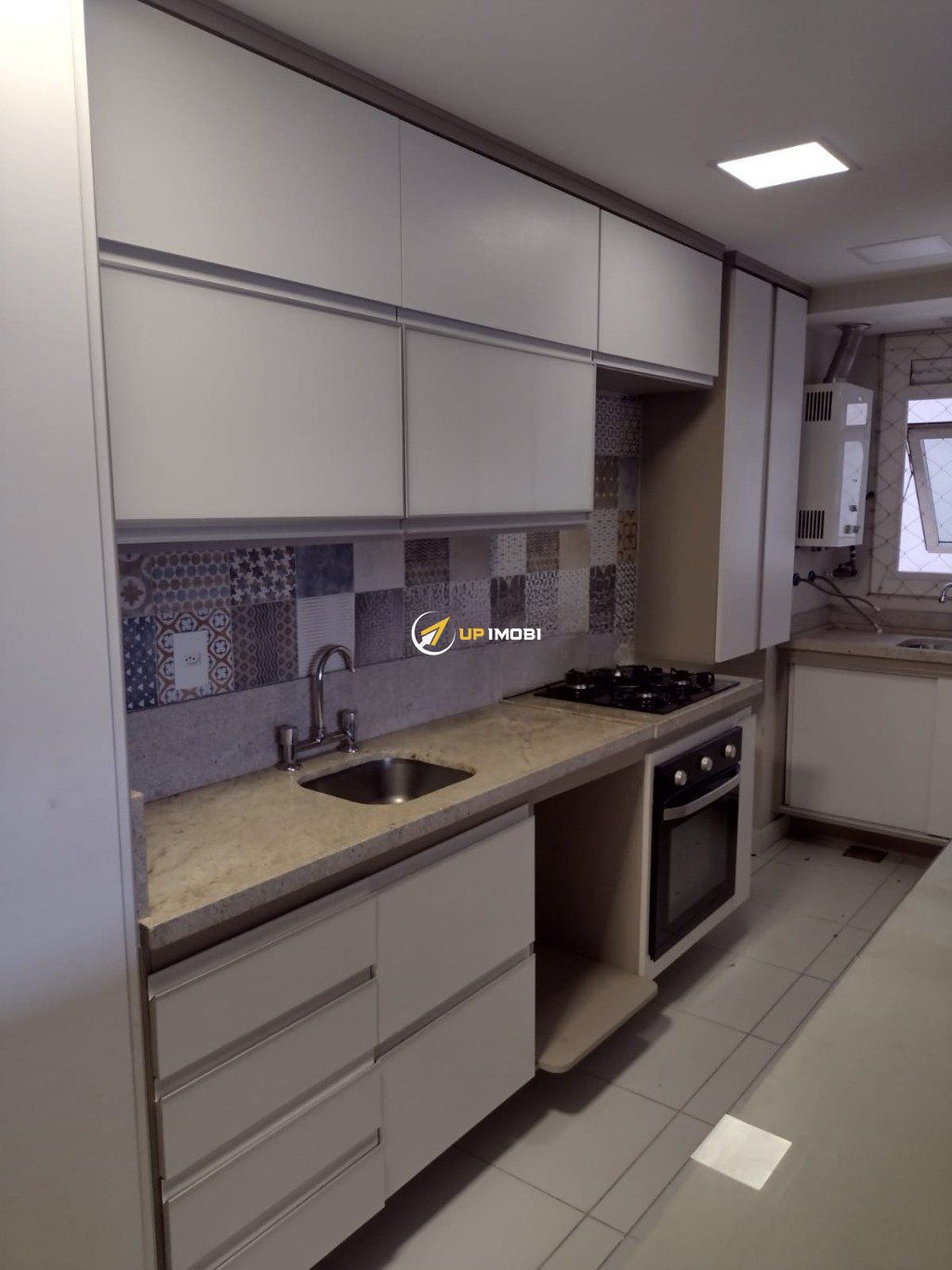 Apartamento com sala ampla, com janelas grandes que garantem excelente iluminação solar e ventilação natural. Cozinha com móveis planejados, arejada e iluminada, em piso porcelanato, com janelas amplas. Área de serviço arejada e iluminada, com gás central.