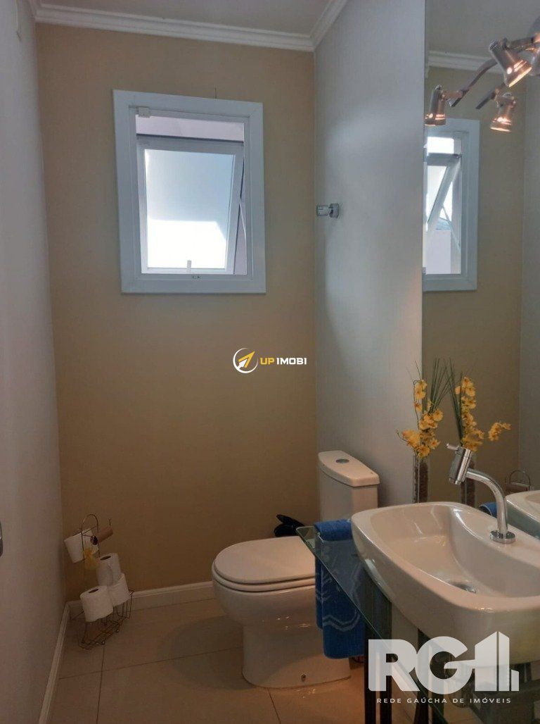 3 dormitórios sendo 1 suite com closet, terraço nos fundos e amplo sacadão na frente. cozinha em conceito aberto integrada a sala de jantar, living amplo com lareira, banheiro social, lavabo, varanda aberta com churrasqueira, lavanderia e amplo pátio com garagem para 10 carros. Cortinas persianas elétricas, vidros de 8mm, 110/220v, janelas de PVC, alarme e cerca elétrica. Possibilidade de ampliação nos fundos do terreno.