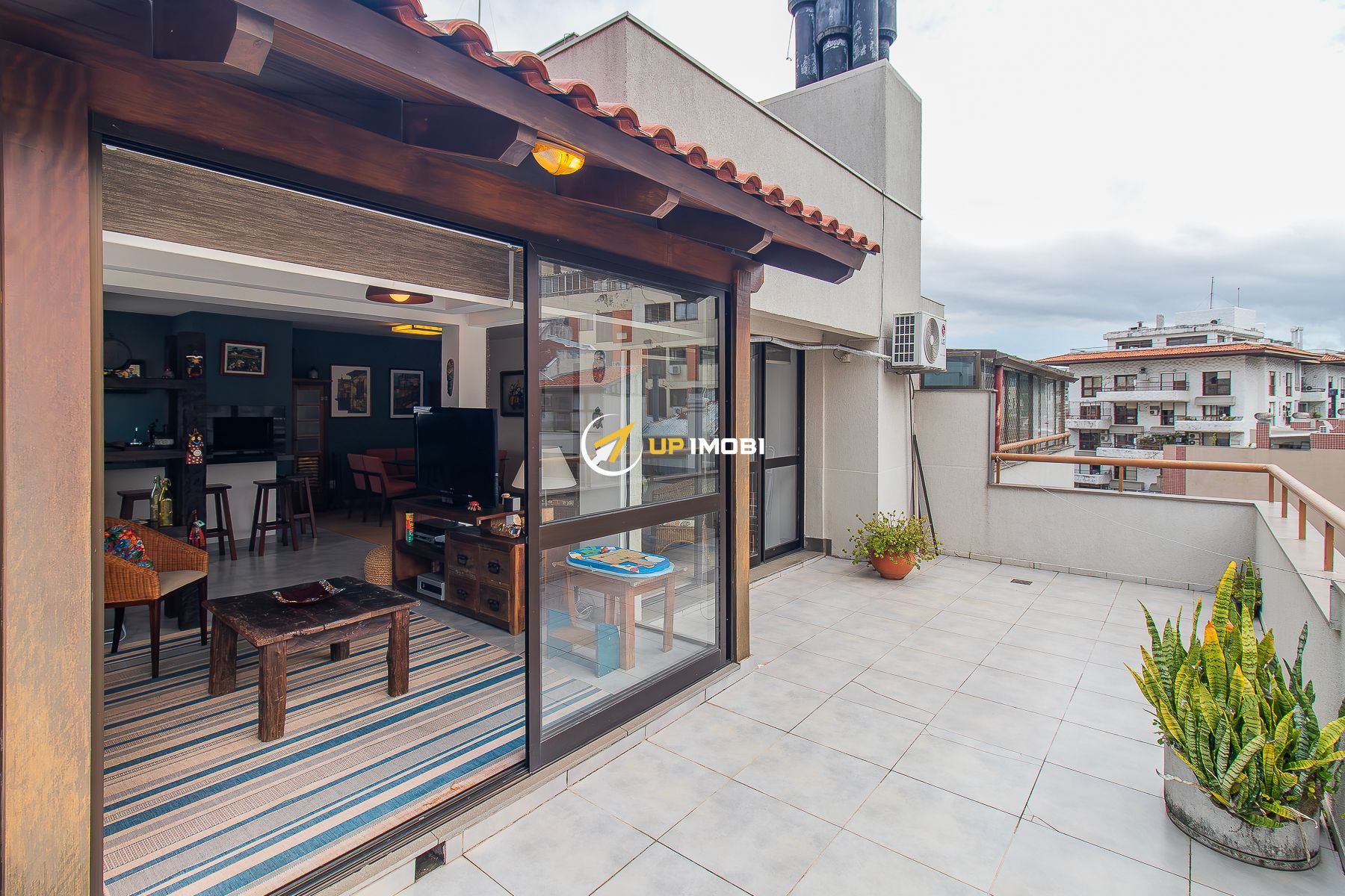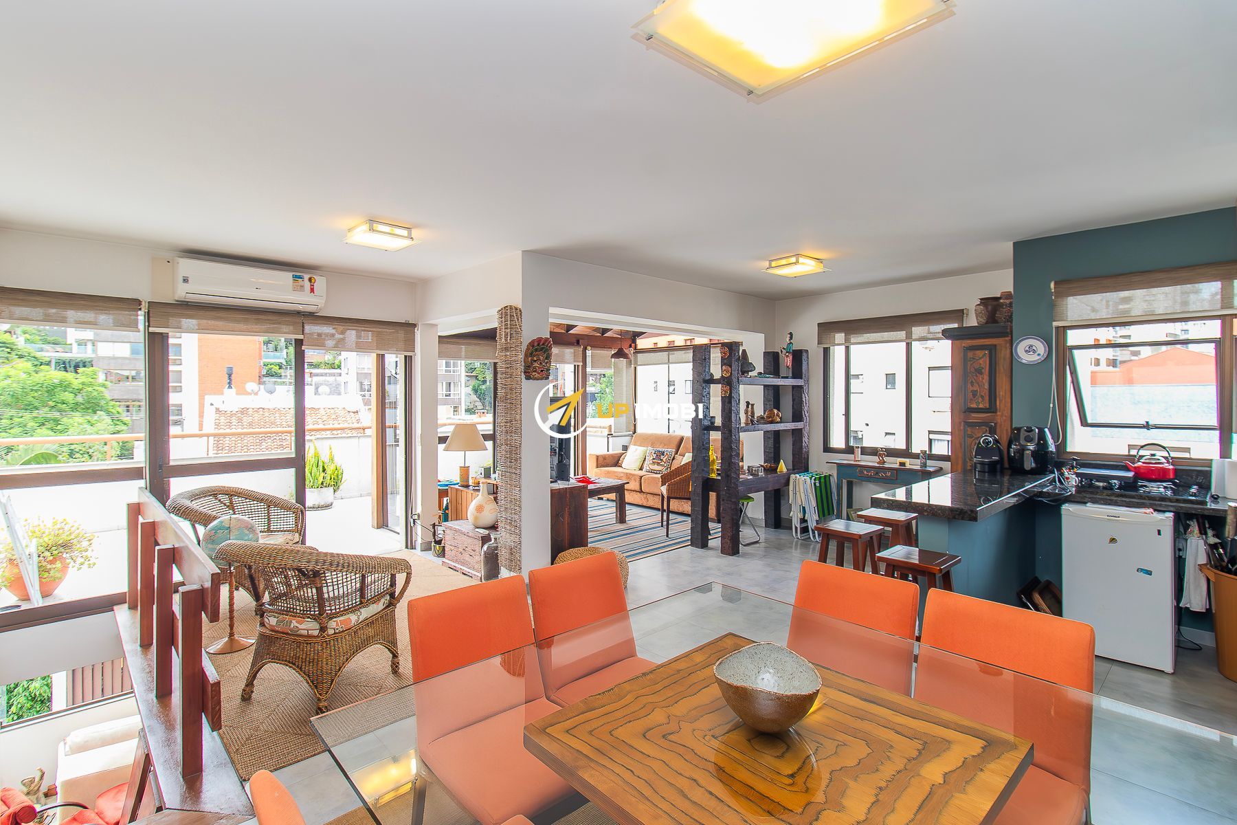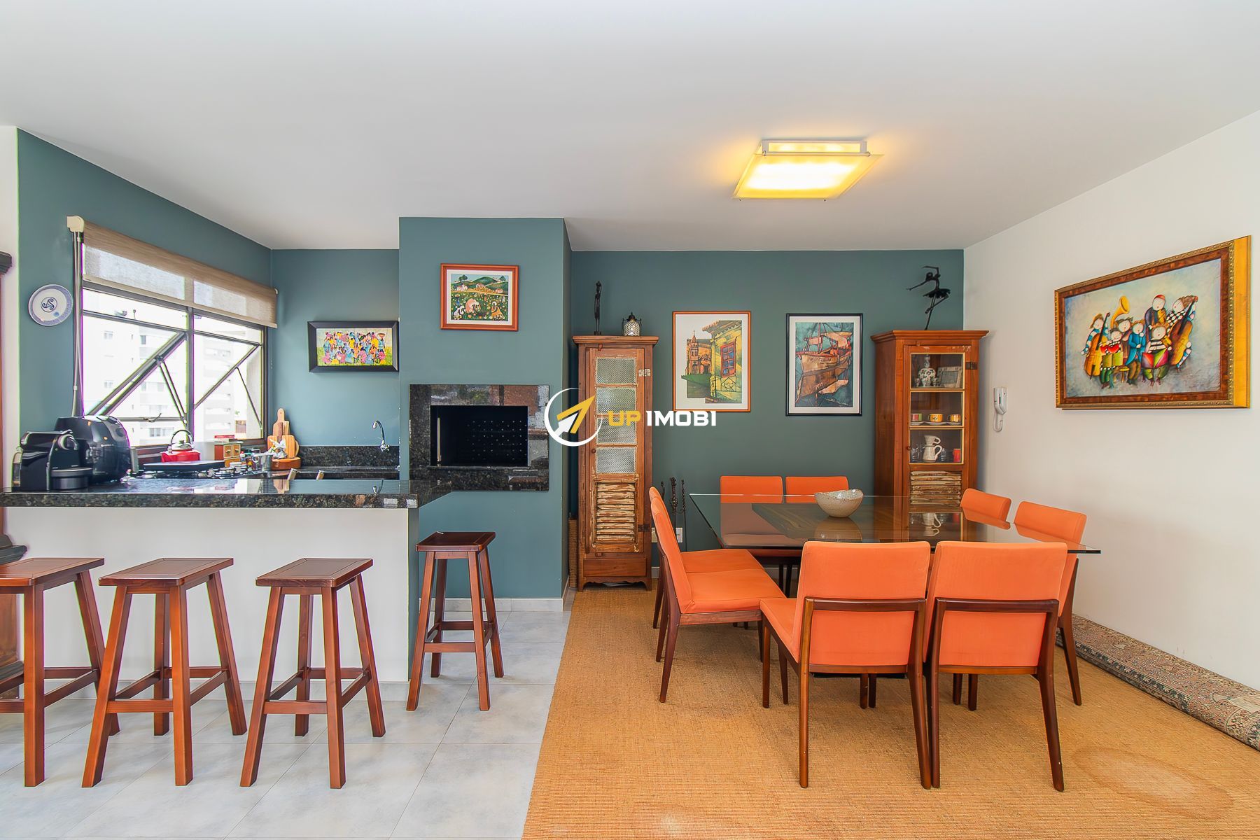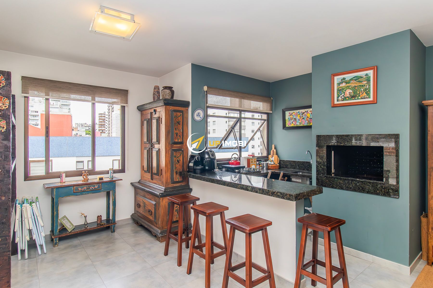 No segundo pavimento espaço gourmet, área externa ampla e ensolarada com uma vista deslumbrante do bairro.