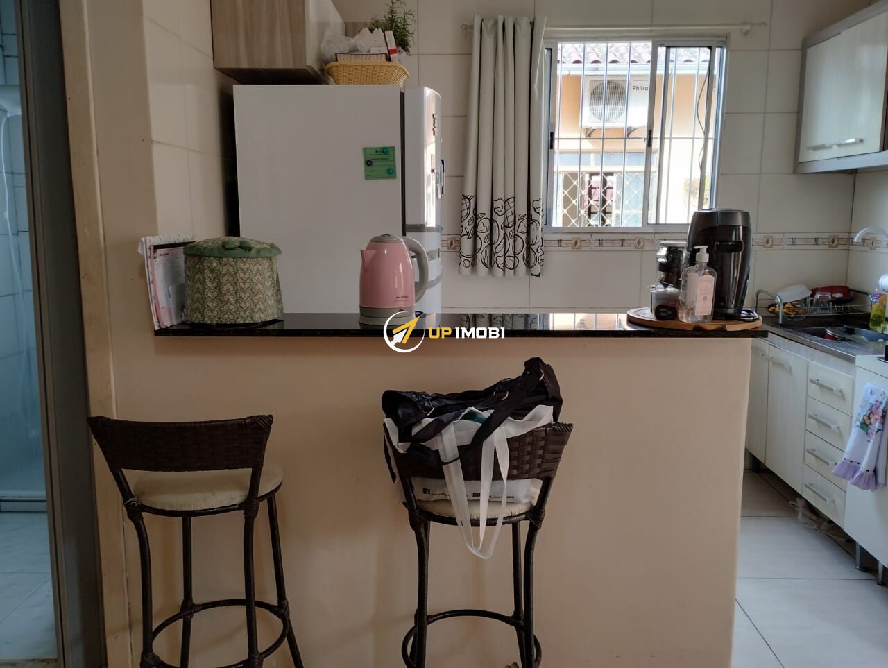A segunda casa, também dois dormitórios, banheiro, sala, cozinha estilo americano. Com + ou - 50 m²