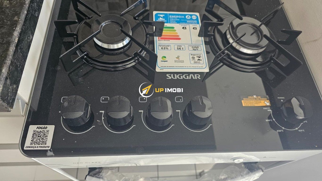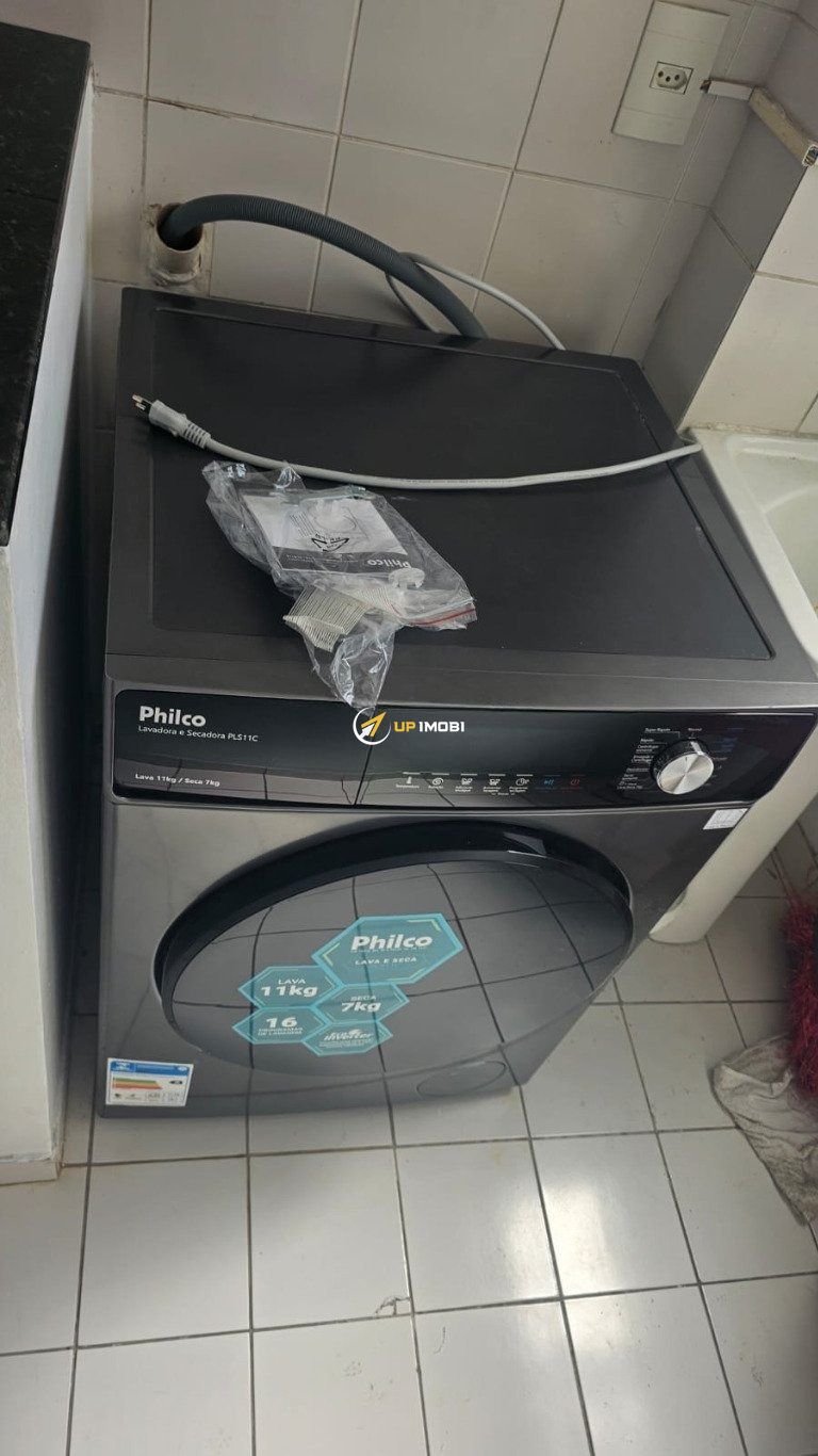 O imóvel é entregue exatamente como nas fotos, com tudo novo: geladeira, fogão, micro-ondas, lava e seca, sofá com chaise, dormitório de casal sob medida (cama box baú e guarda-roupas), cozinha planejada com bancada em pedra, armários, mesa com cadeiras e rack.