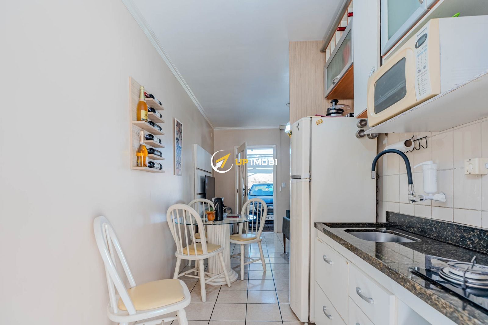 Composta de sala/cozinha , banheiro social, 2 dormitórios, pátio com churrasqueira + área de serviço coberta, sol da manhã.