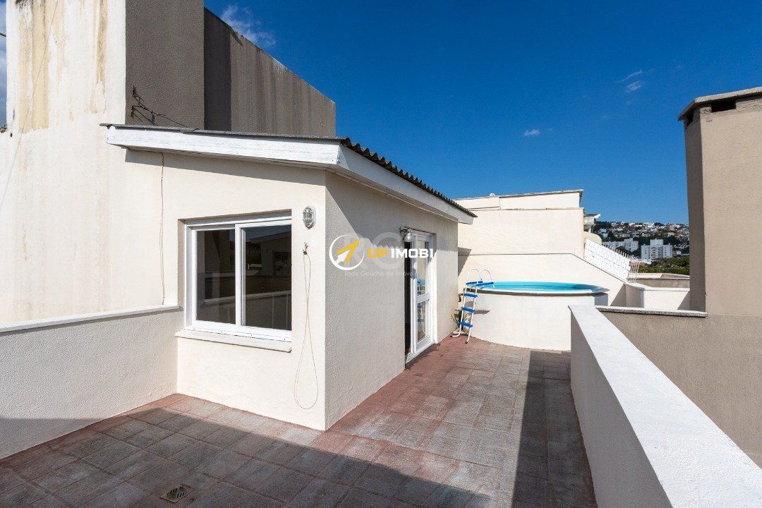 Ótima cobertura no bairro Nonoai, com aproximadamente 135m² de área privativa, 02 dormitórios com cama e armário, living com sofá e sacada fechada com vidros, cozinha americana com pia, armários, há disponibilidade de escritório reservado na sacada fechada ótimo para home-office, área de serviço com tanque, terraço com lareira, lavabo, churrasqueira e piscina. Condomínio com portaria 24hs, playground, salão de festas, churrasqueira coletiva, bicicletário e elevador. Venha conhecer