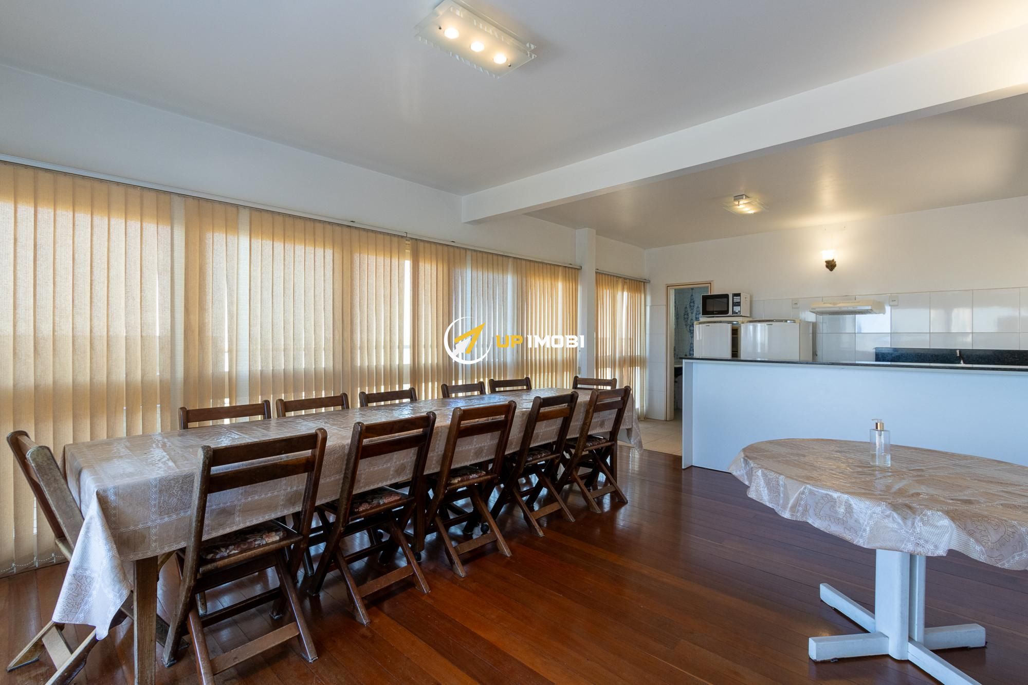 O edifício possui um salão de festas no 9° andar com uma área de 260 mq, sendo 70% coberta com toda a infraestrutura como, fogão a gás, microondas, geladeira, freezer, churrasqueira, mesas e cadeiras para servir, toda a louça, talheres, copos, cálices completos, espetos, facas para churrasqueiro, enfim, para fazer um churrasco basta levar a carne, o sal e o carvão.