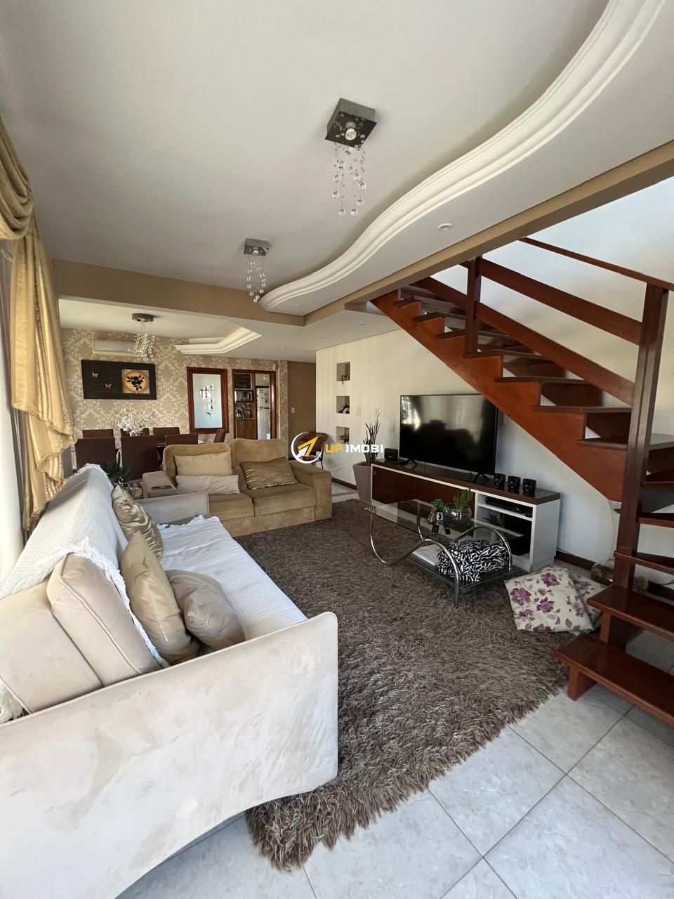 No segundo andar, uma aconchegante sala de estar proporciona um ambiente ideal para descanso e convivência.