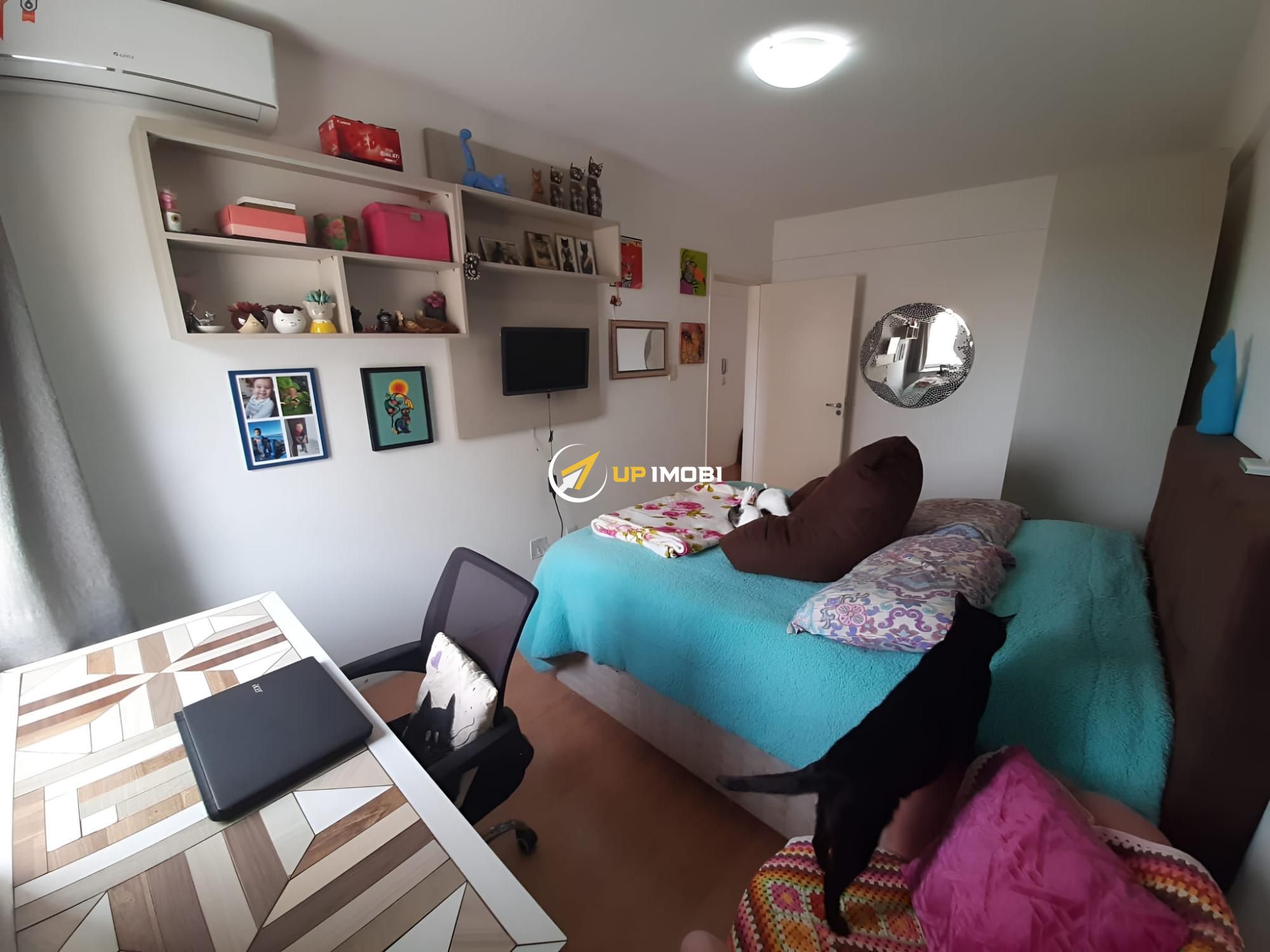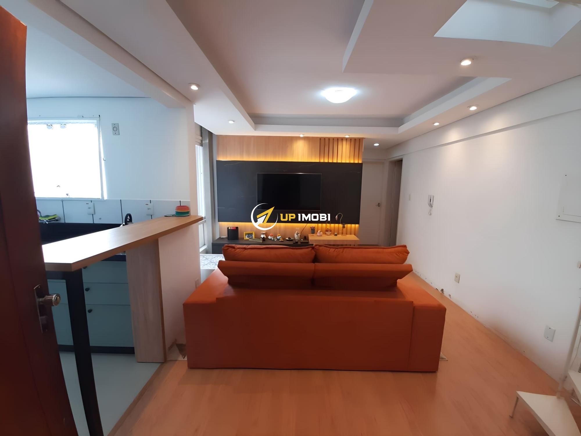 Os móveis planejados da cozinha, do banheiro e o painel de TV da sala permanecem no imóvel.