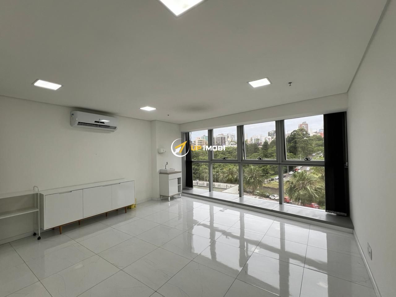 Sala com sala de espera, banheiro, espera para copa e amplo espaço de trabalho voltada para o norte, com vista livre.