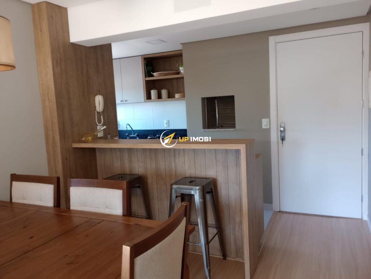 Possui cozinha sob medida, móveis planejados, churrasqueira, acabamento em gesso, piso laminado e porcelanato, aberturas externas em PVC e aberturas internas em madeira, garantindo conforto térmico, acústico e um ótimo padrão estético. O apartamento é semi-mobiliado, permanecendo os móveis sob medida e eletrônicos.