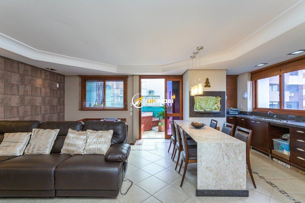 Ótima cobertura duplex, no bairro Rio Branco, andar alto, com 203m² privativos, de 3 dormitórios e 2 vagas. Possui no andar inferior: amplo living para 2 ambientes com rebaixe em gesso e sacada integrada, 3 dormitórios sendo 1 suite com closet e sacada, lavabo, cozinha americana, e área de serviço separada e banheiro auxiliar. Água quente na cozinha e banheiros. No andar superior possui: ampla sala de estar com lareira e espaço gourmet com churrasqueira, banheiro social, amplo terraço com deck e piscina, com excelente vista e muito sol. Possui 2 vagas escrituradas e cobertas (lado a lado). Edificio com portaria virtual 24 horas, elevadores, gás central, amplo salão de festas, sala de jogos, e zelador. Localizado em ótima região próximo da Praça da Encol, a poucos minutos do Zaffari Cabral, do Grêmio Náutico União, com todos os recursos próximos. Documentação Ok. Agende já uma visita.