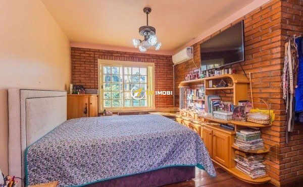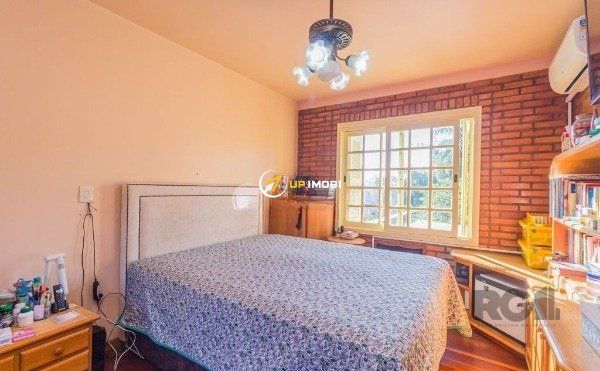 Ótimo e amplo sobrado no Condomínio Grunwald, com 212m² privativos, de 4 dormitórios, 2 vagas e infra. Costrução em estilo rústica, com peças amplas, muito ventiladas. Possui hall de entrada, sala de estar, sala de jantar, lavabo, 3 dormitórios sendo 1 suíte com closet, hidro e sacada, banheiro social, ampla sacada, jardim de inverno, gabinete, copa cozinha espaçosa, lavanderia, dependência e banheiro auxiliar. Garagem coberta para 2 carros. Pátio gramado na frente. Condomínio com portaria 24 horas, piscinas adulto e infantil, salão de festas com churrasqueiro e fogão a lenha, playground, quadra de esportes, monitoramento por câmeras, área verde com mata nativa, estacionamento para visitantes, e zeladoria. Localizado em ótima região a poucos minutos da UFRGS Agronomia, fácil acesso à PUC, com comércio, transporte próximos. Aceita financiamento e *estuda* apartamento em Porto Alegre como parte de pagamento (até 50% do valor - solicite mais informações). Agende já uma visita.