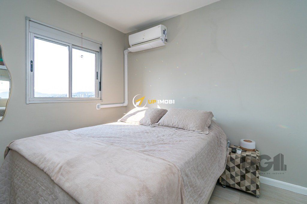 Andar alto com vista livre, iluminado e ensolarado com 2 dormitórios banheiro social, living para 2 ambientes, cozinha americana com churrasqueira, 1 vaga escriturada descoberta . Sol da manhã, piso frio porcelanato imitando laminado na sala e nos dormitórios e piso cerâmico nas áreas frias. Fica com os móveis fixos planejados, cozinha e banheiro, ar-condicionado split no quarto do casal e dormitório de solteiro, água quente na cozinha e chuveiros. Medidores de agua e gas individuais
