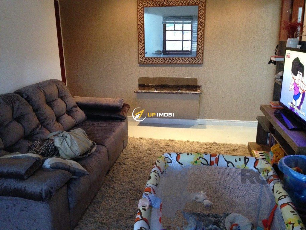 Ótima cobertura no bairro Nonoai, duplex, com 124m² privativos, de 3 dormitórios, e 2 vagas. Possui no andar inferior: sala ampla com lareira ecológica, 2 dormitórios, 1 banheiro, cozinha. Acesso ao andar superior por escada de madeira. No andar superior possui: 1 dormitório, banheiro, sala de estar, e área externa com pia e churrasqueira. Possui 1 vaga de garagem coberta e escriturada (cabem 2 carros pequenos). Condomínio com interfone, portaria presencial noturna, gás central, NÂO possui elevador. Localizado em ótima região a poucos minutos do Bourbon Teresópolis. Aceita financiamento. Agende já uma visita.