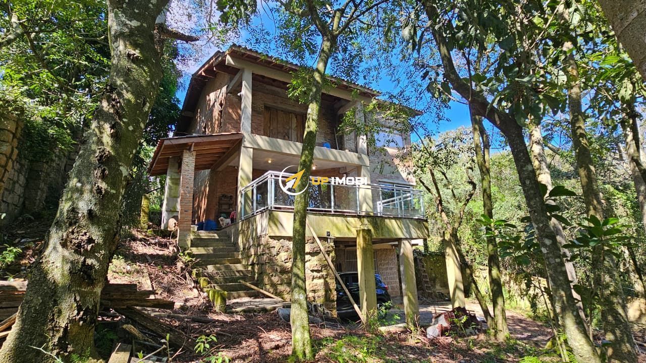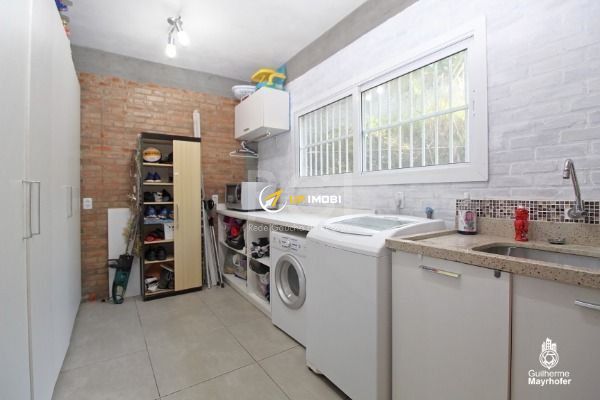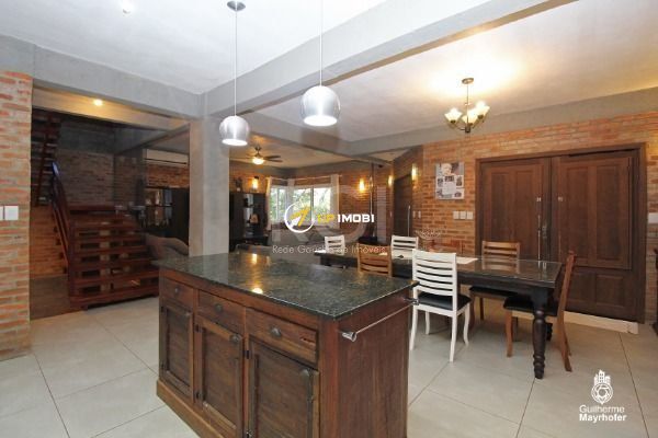 Com 340m² divididos em 3 pavimentos, conta com garagem pra dois carros com entrada pelo sub-solo onde está situado um estúdio que pode ser usado como quarto ou escritório e uma escada de granito que leva à área social da casa, esta em conceito aberto que abriga uma espaçosa sala de estar, cozinha aberta e sala de jantar confortável pra 10 pessoas, que desemboca num lindo terraço com churrasqueira semi-coberto com vista para a natureza. Este pavimento conta conta com um banheiro com chuveiro e uma espaçosa lavanderia.