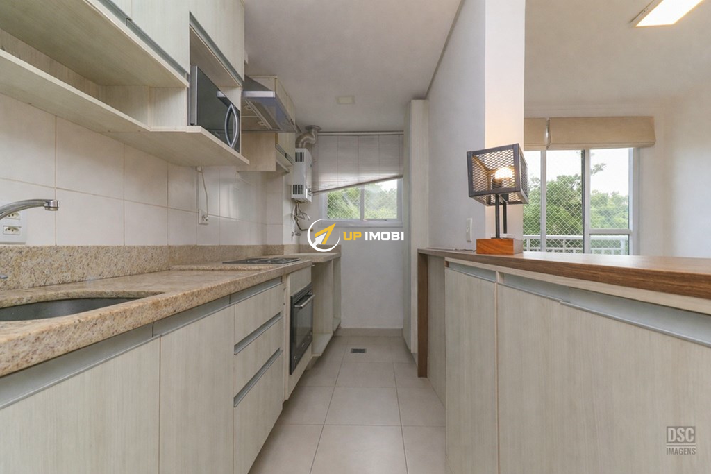 O apartamento está semi mobiliado, tem privacidade nas janelas e vista para o verde. São 2 dormitórios, sendo um deles suíte, 58m2, churrasqueira na cozinha, água quente. Vaga de garagem escriturada.