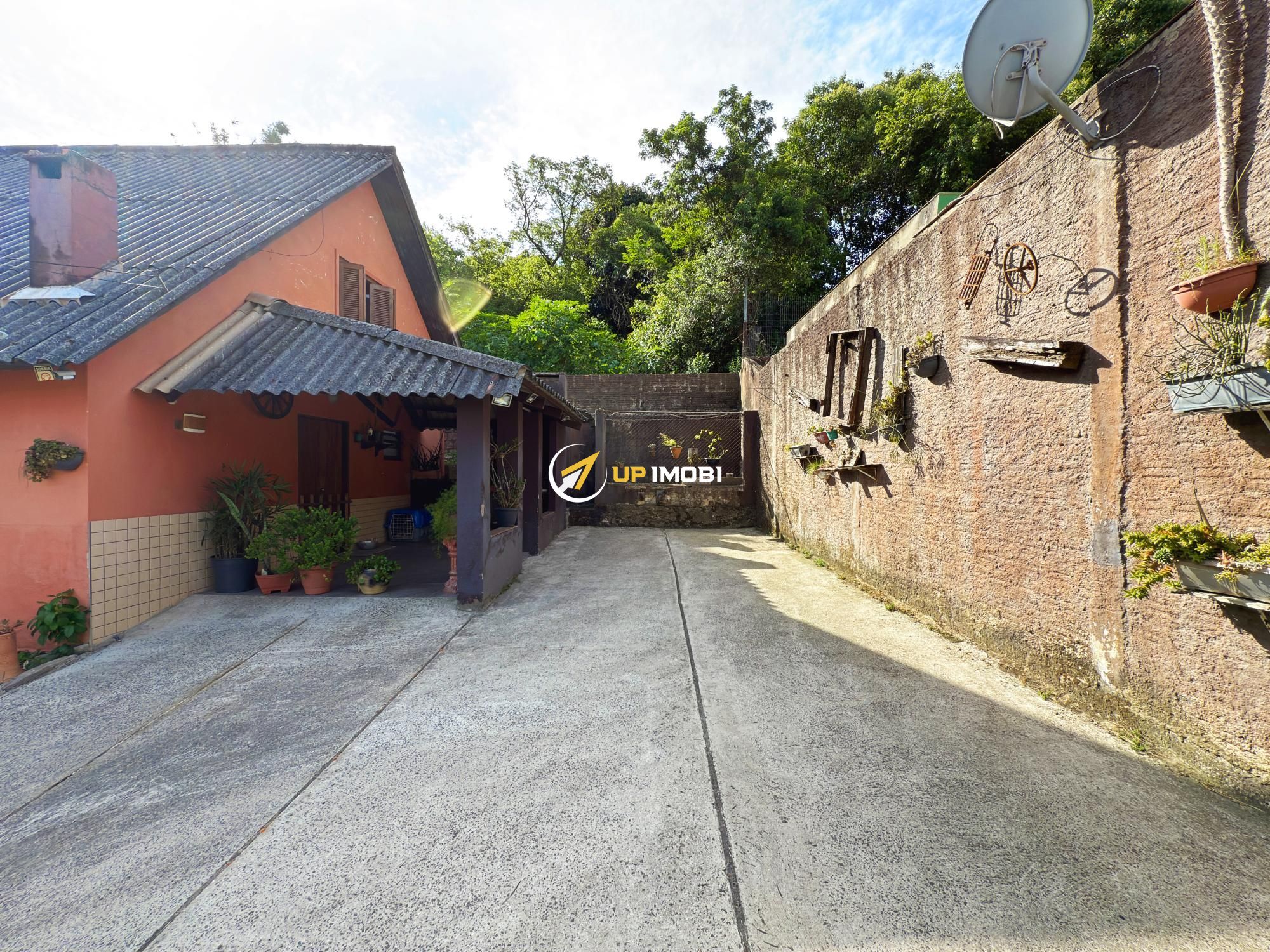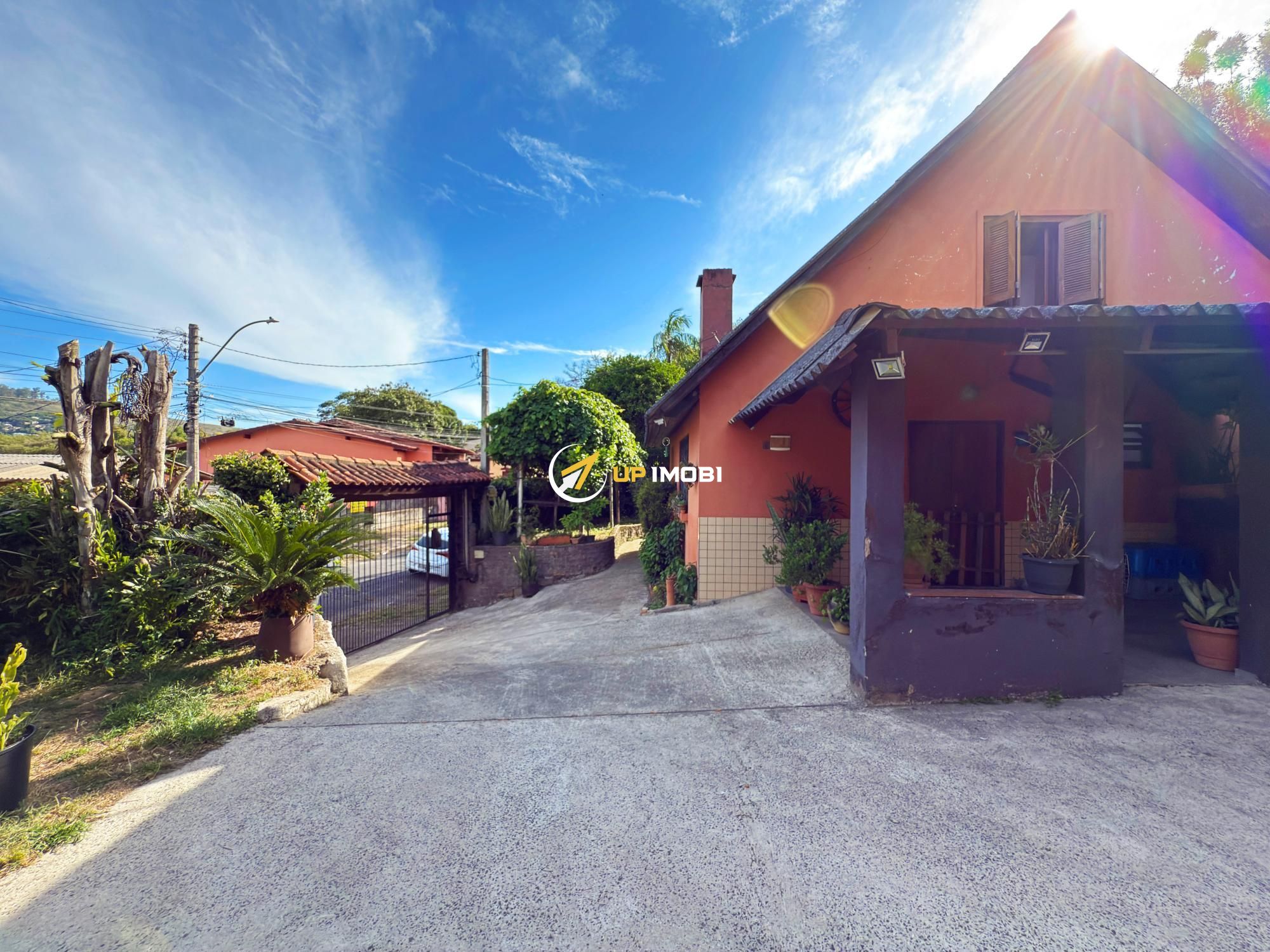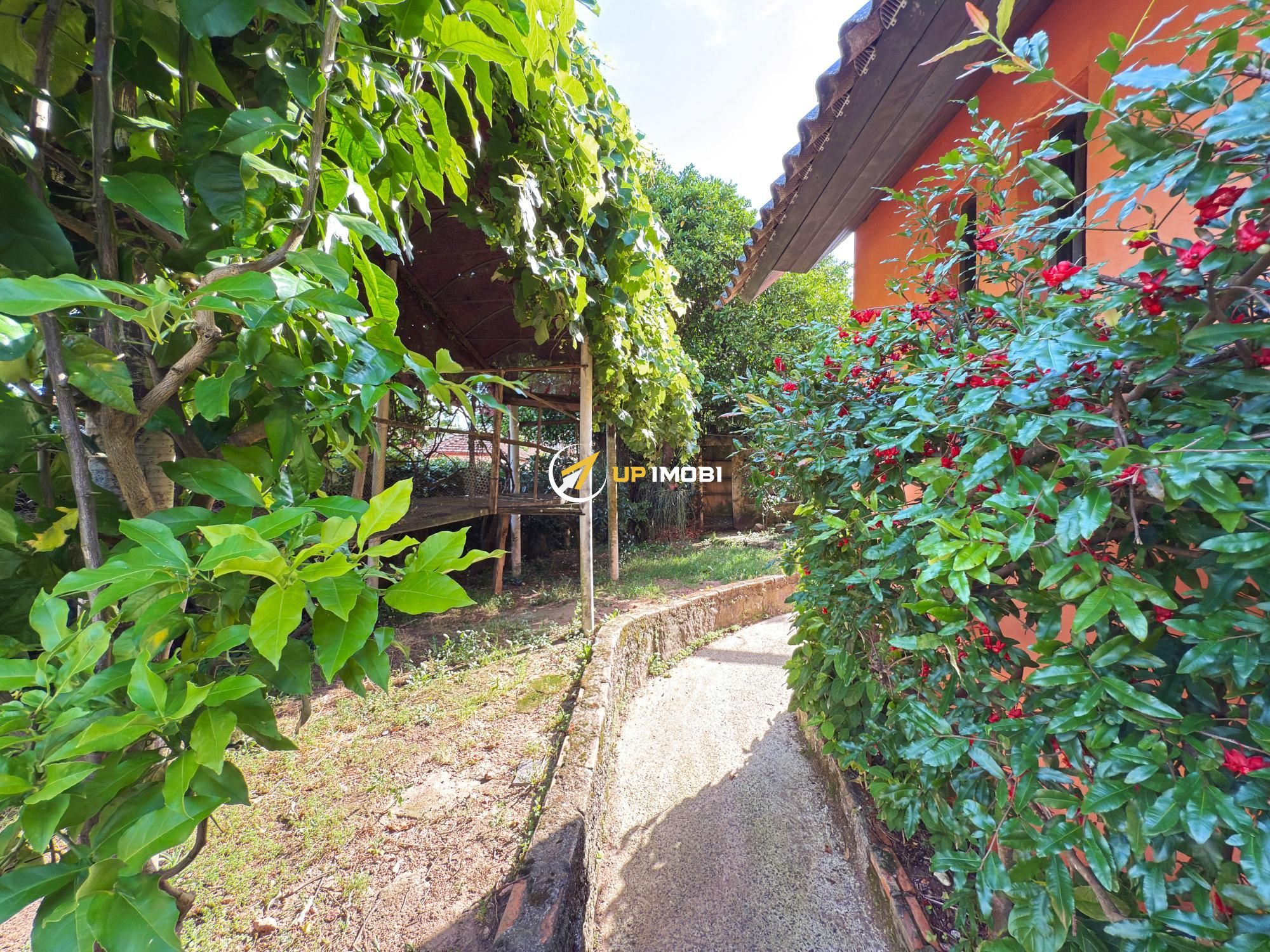 Pátio amplo com arvores frutíferas, área de lazer com churrasqueira, garagem para dois veículos.