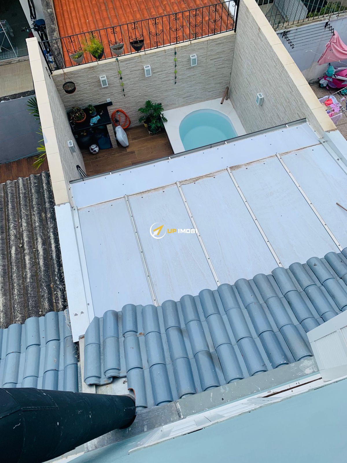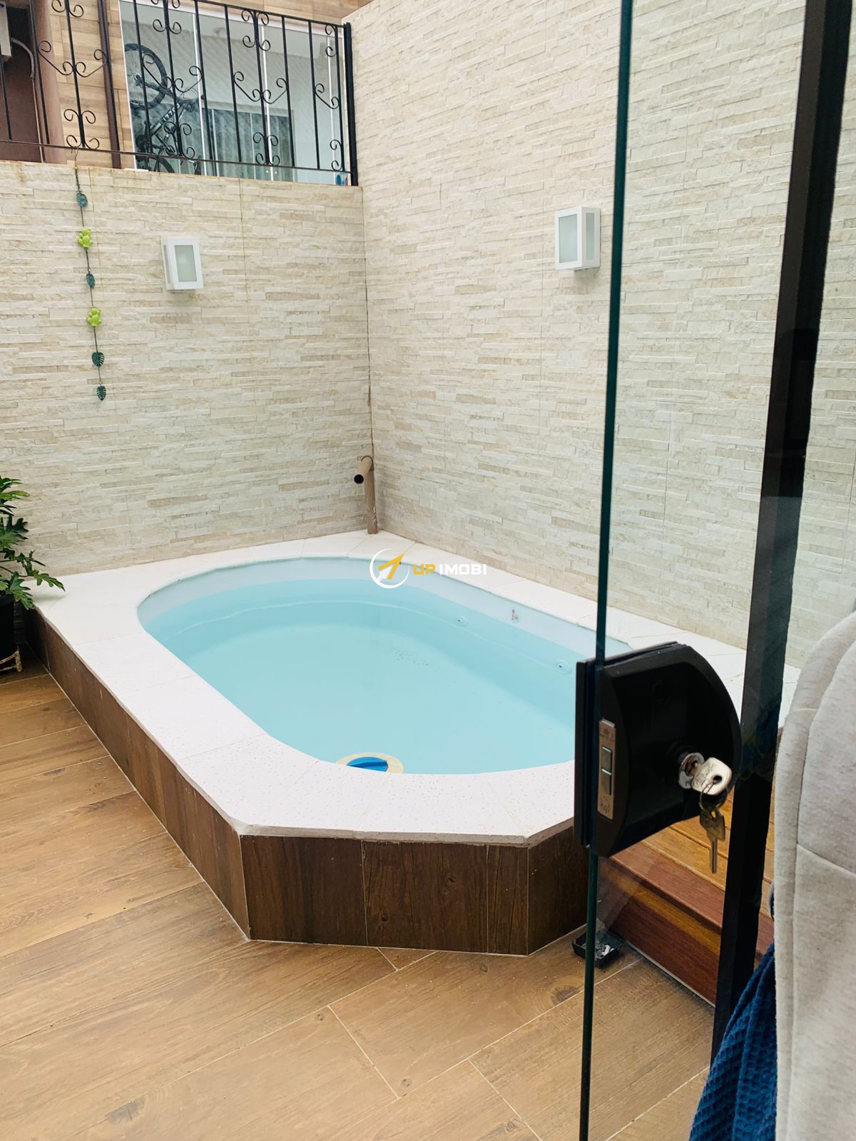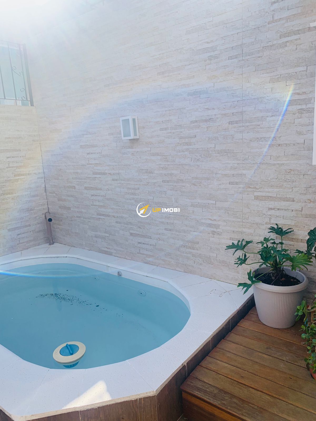 Primeiro piso com sala ampla, lavabo, cozinha grande, pátio na frente e nos fundos. Fundos da casa com piscina com hidromassagem.