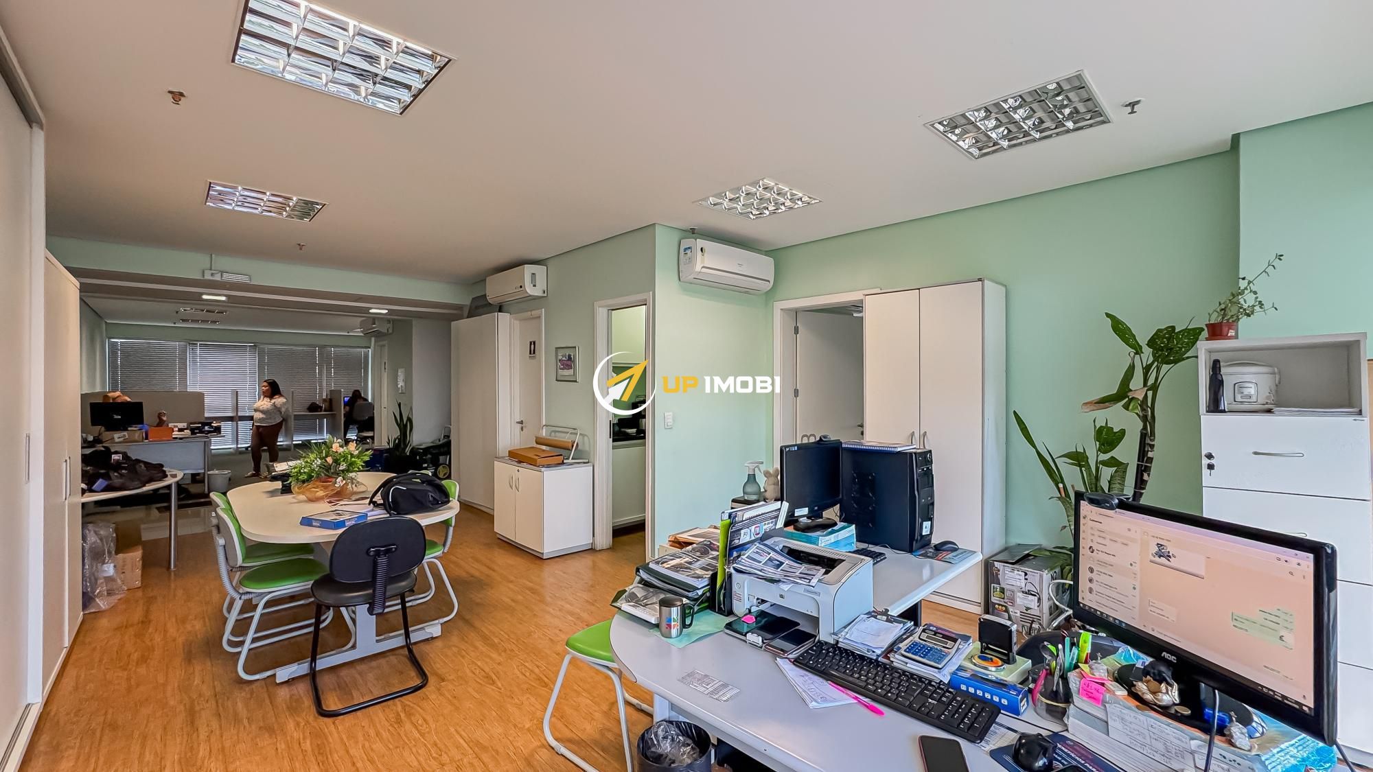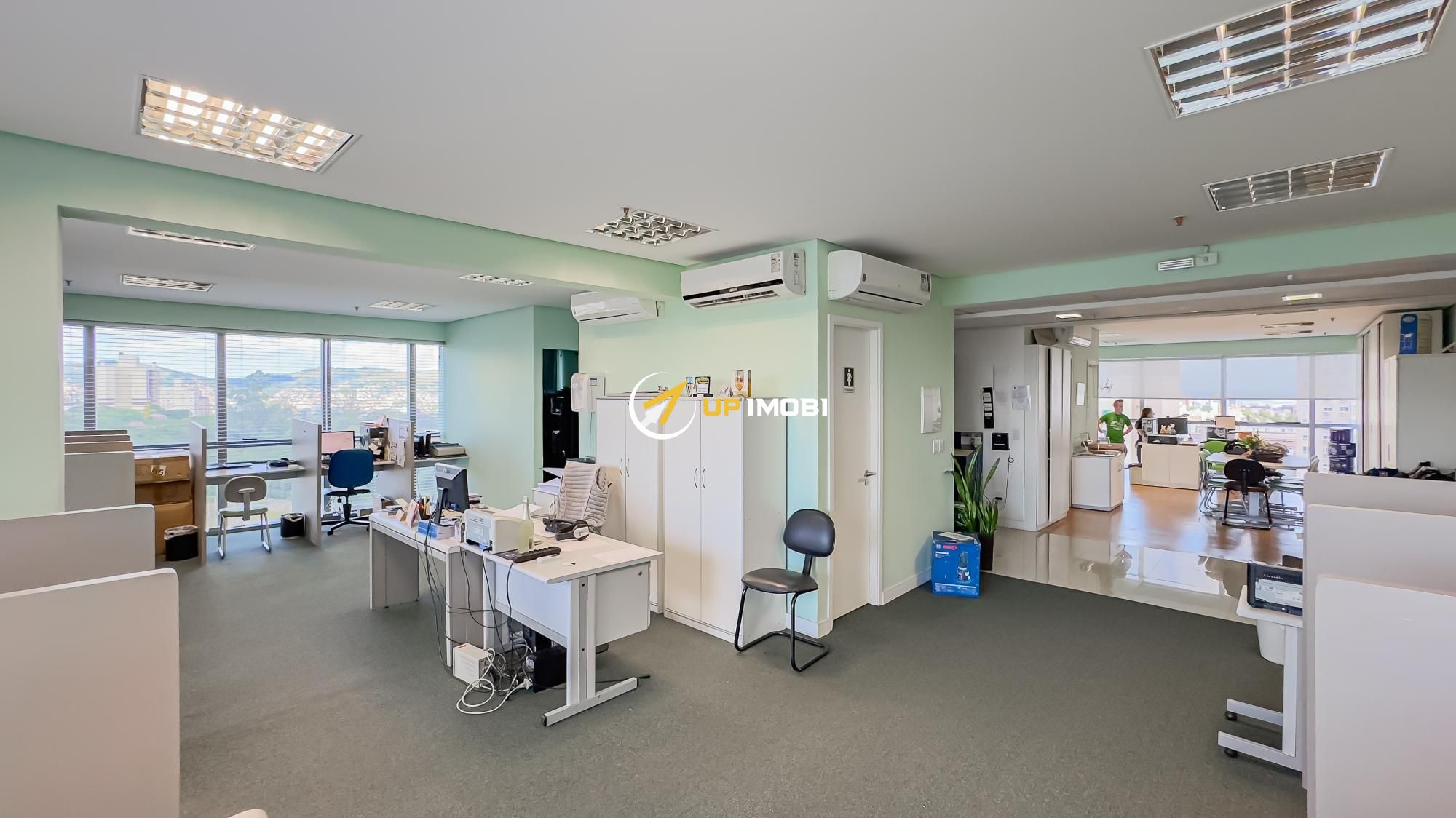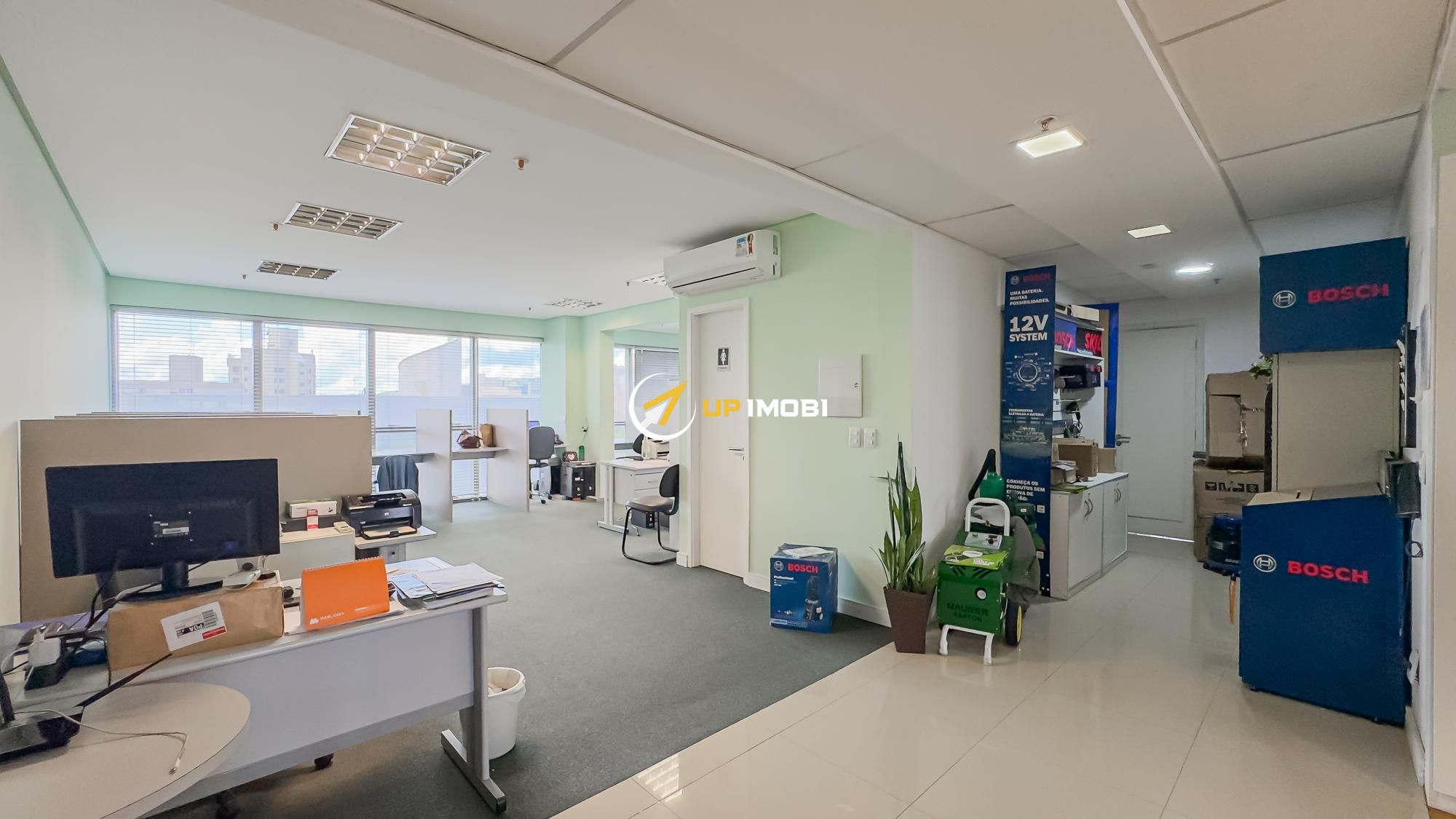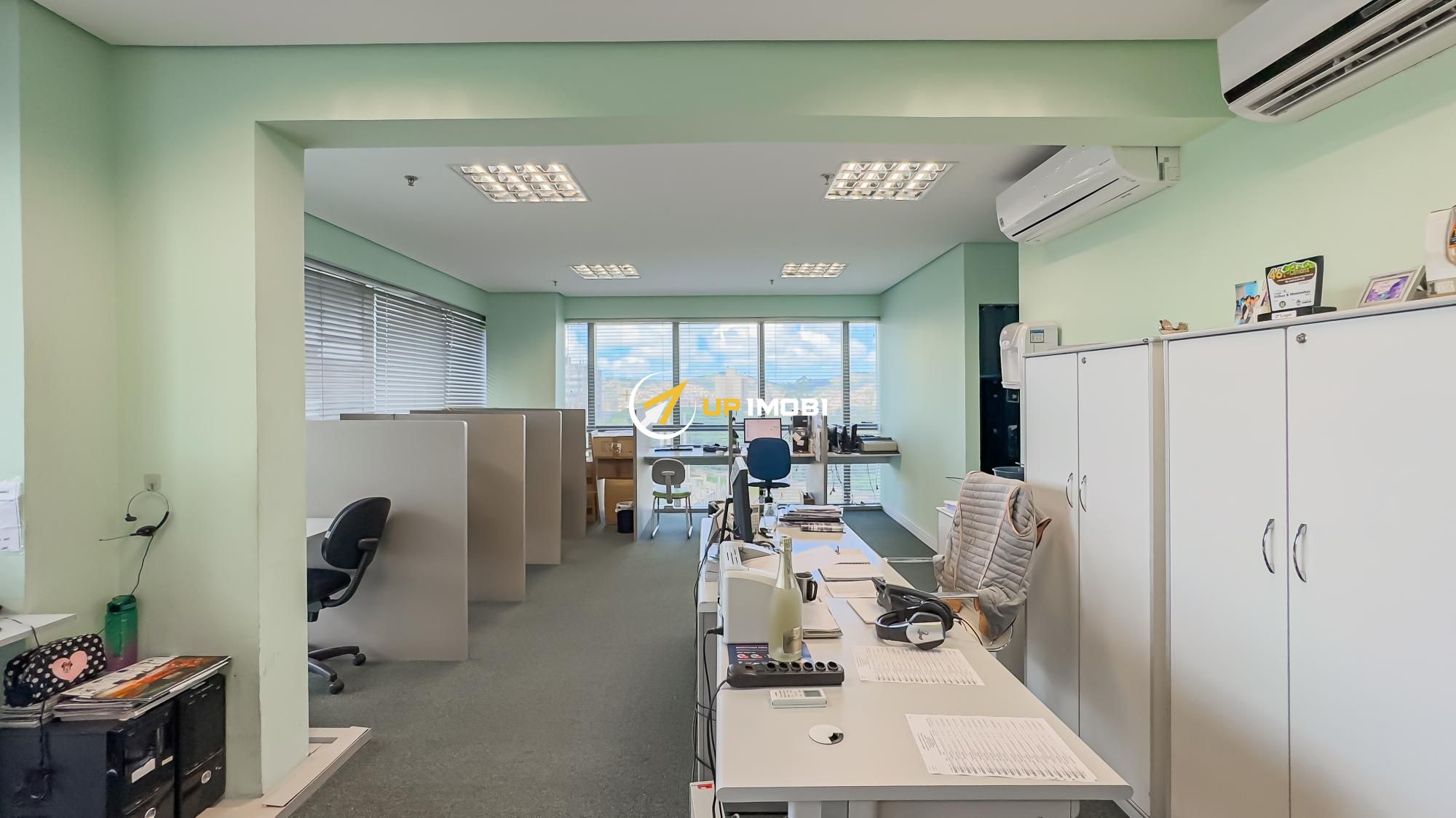 São quase 180m² privativos, formados por 4 salas, 4 banheiros e 4 vagas