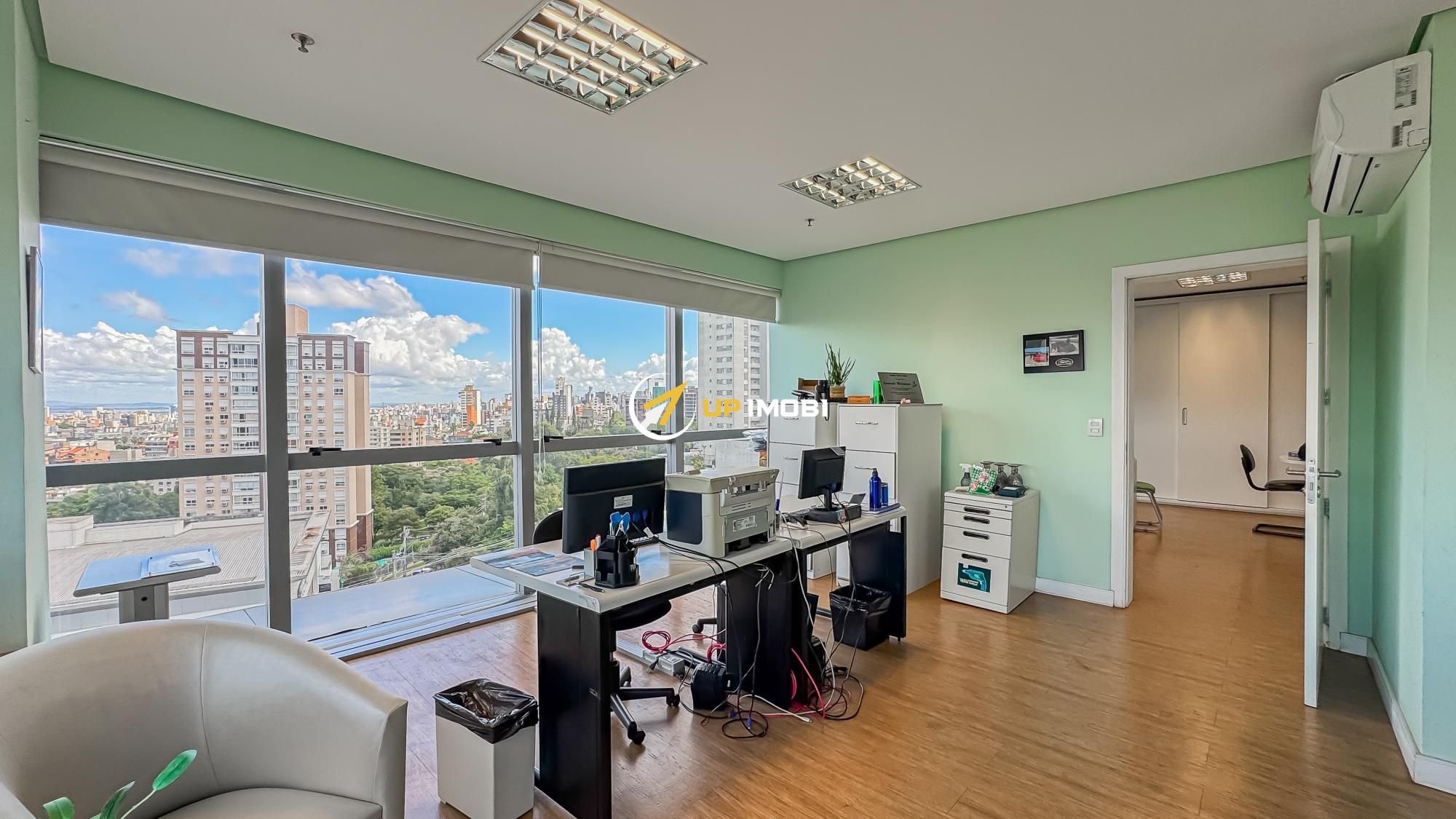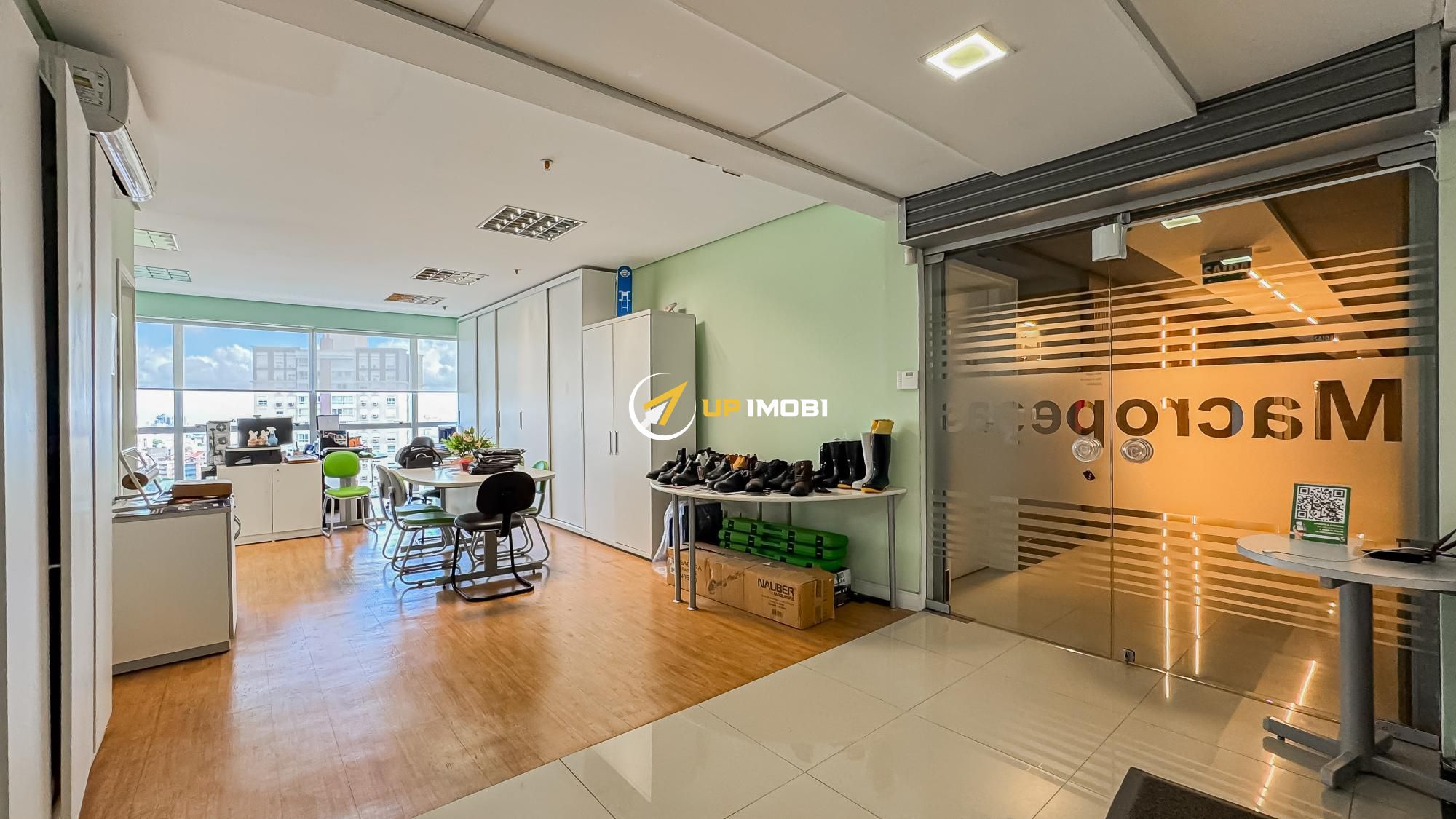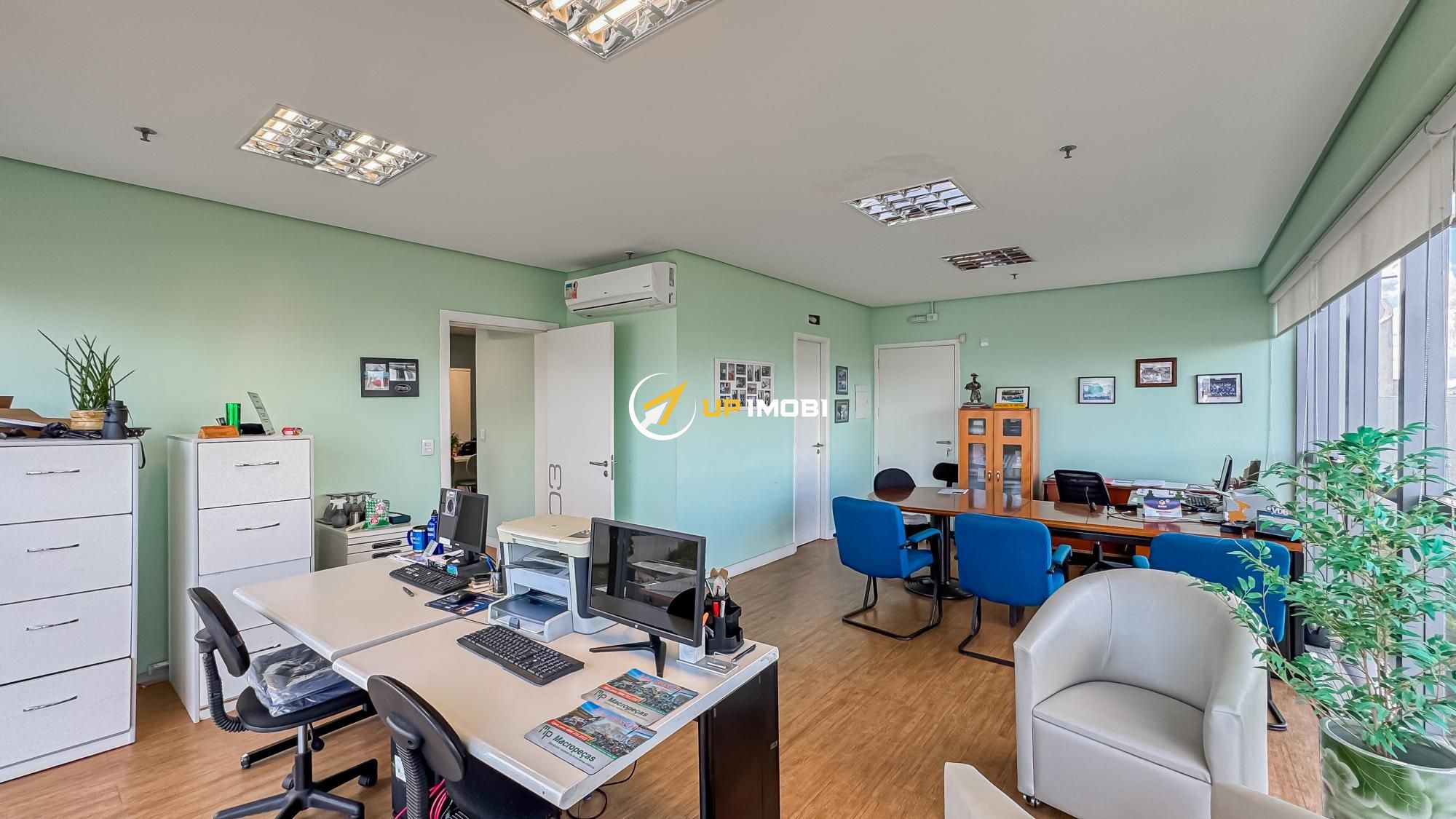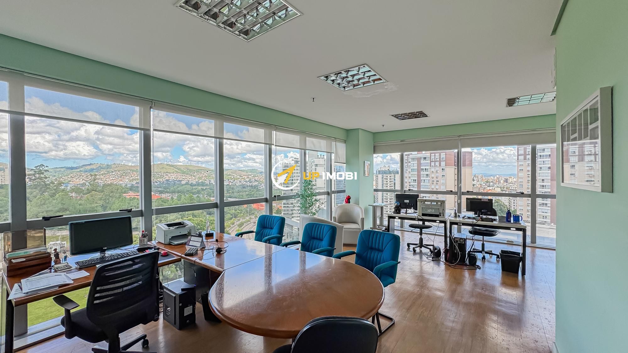 São quase 180m² privativos, formados por 4 salas, 4 banheiros e 4 vagas