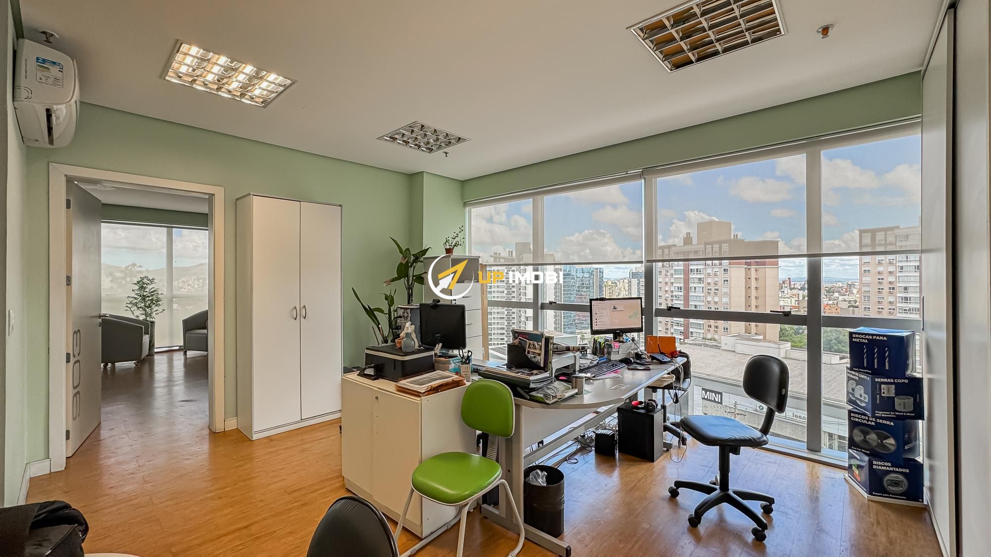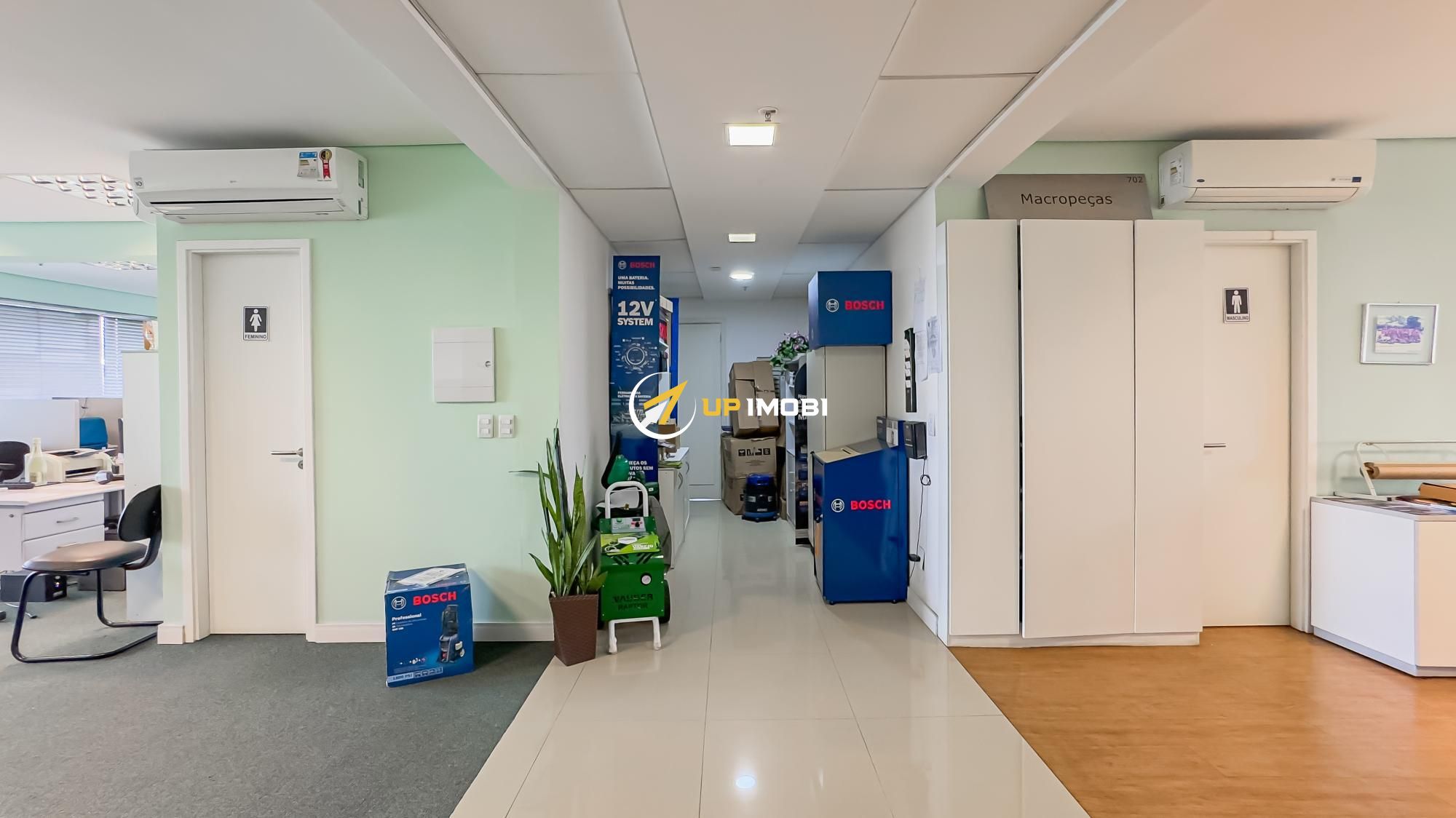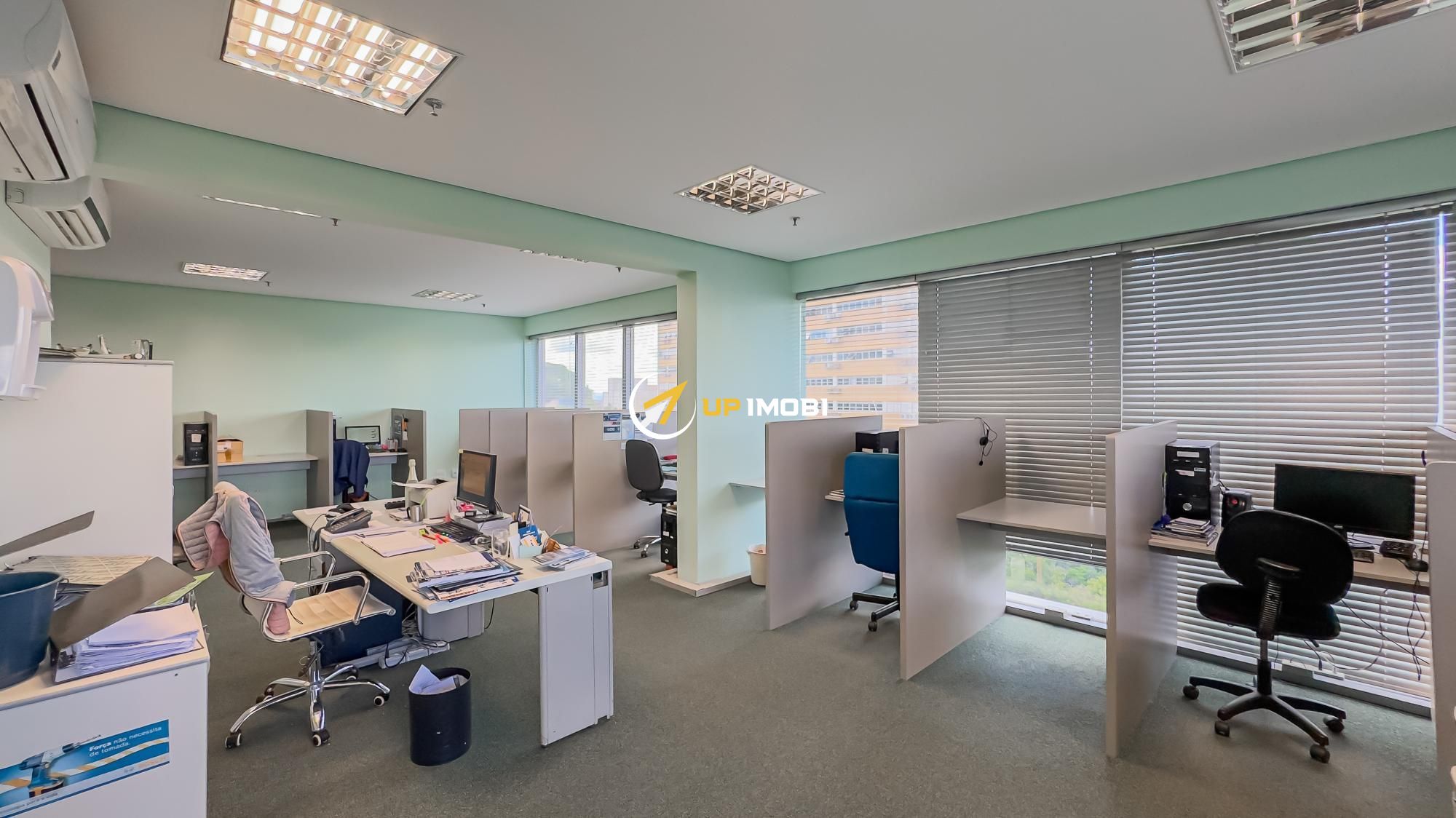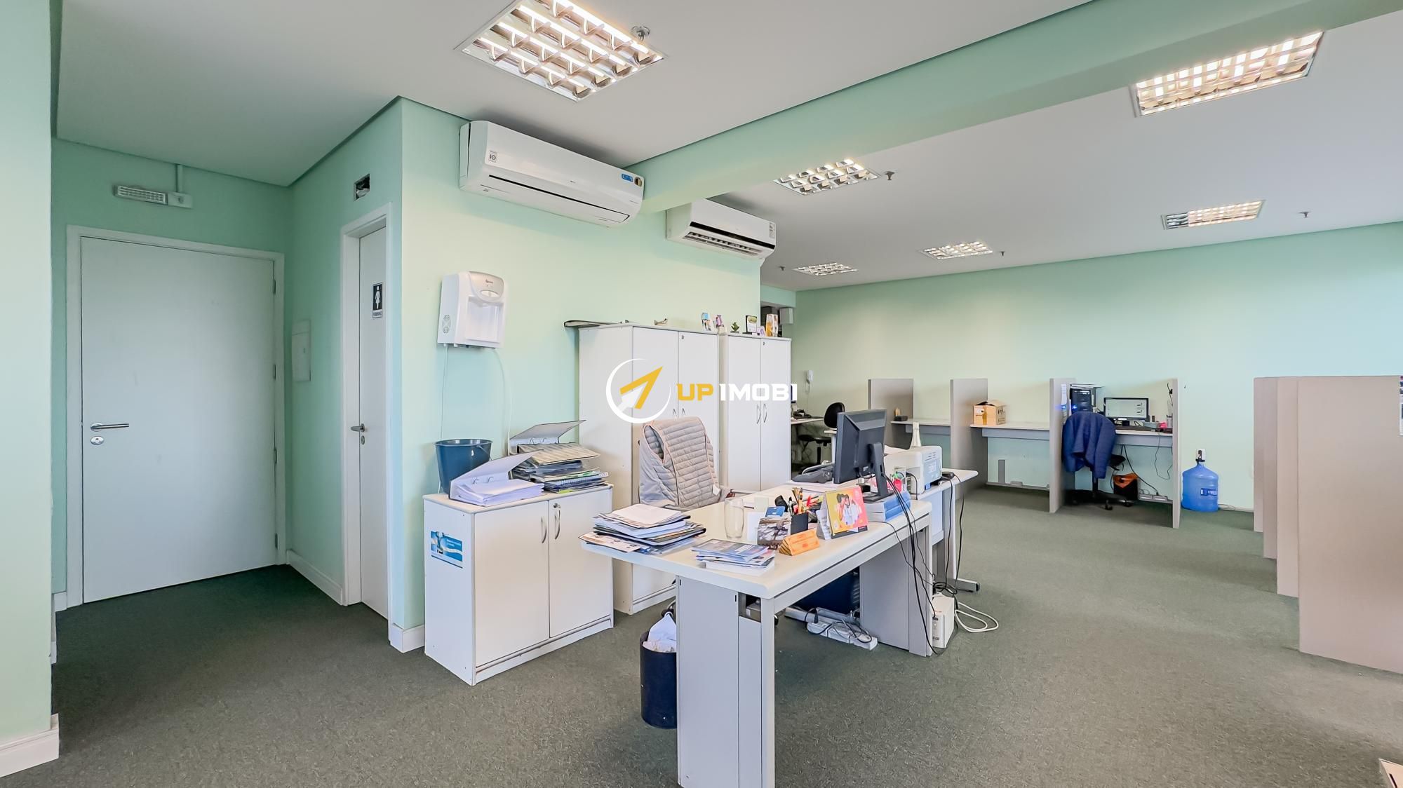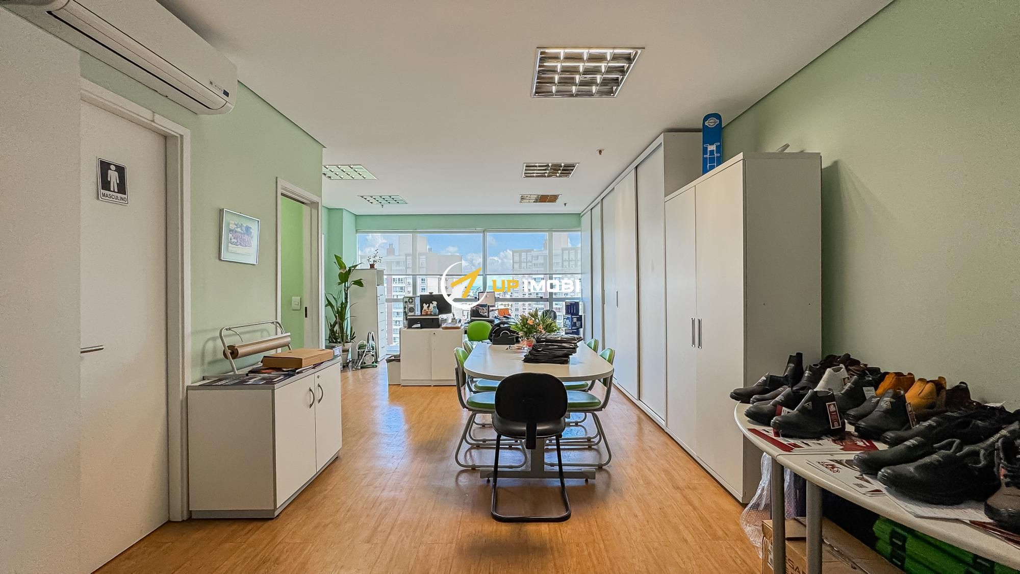 São quase 180m² privativos, formados por 4 salas, 4 banheiros e 4 vagas