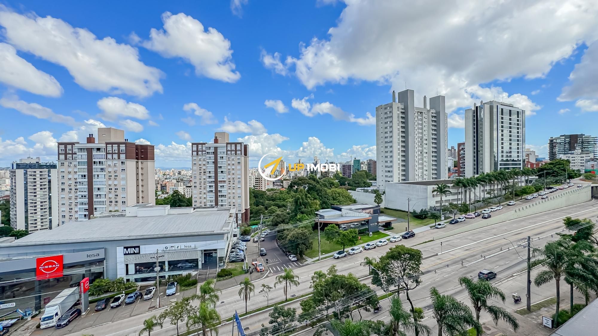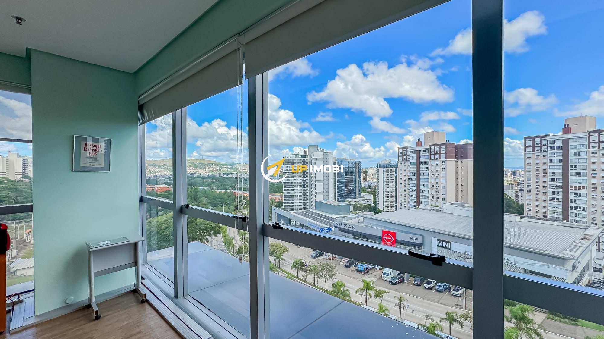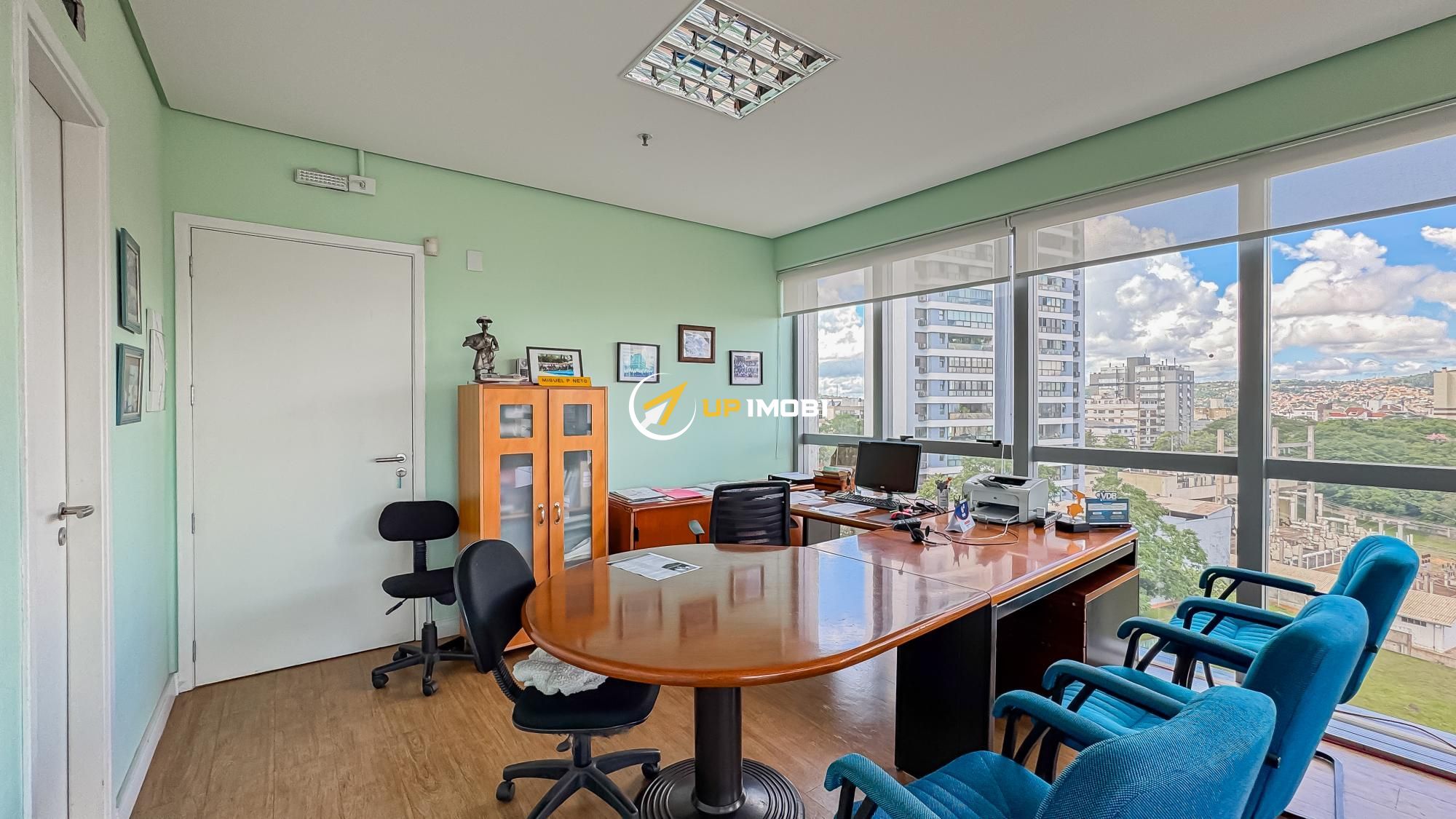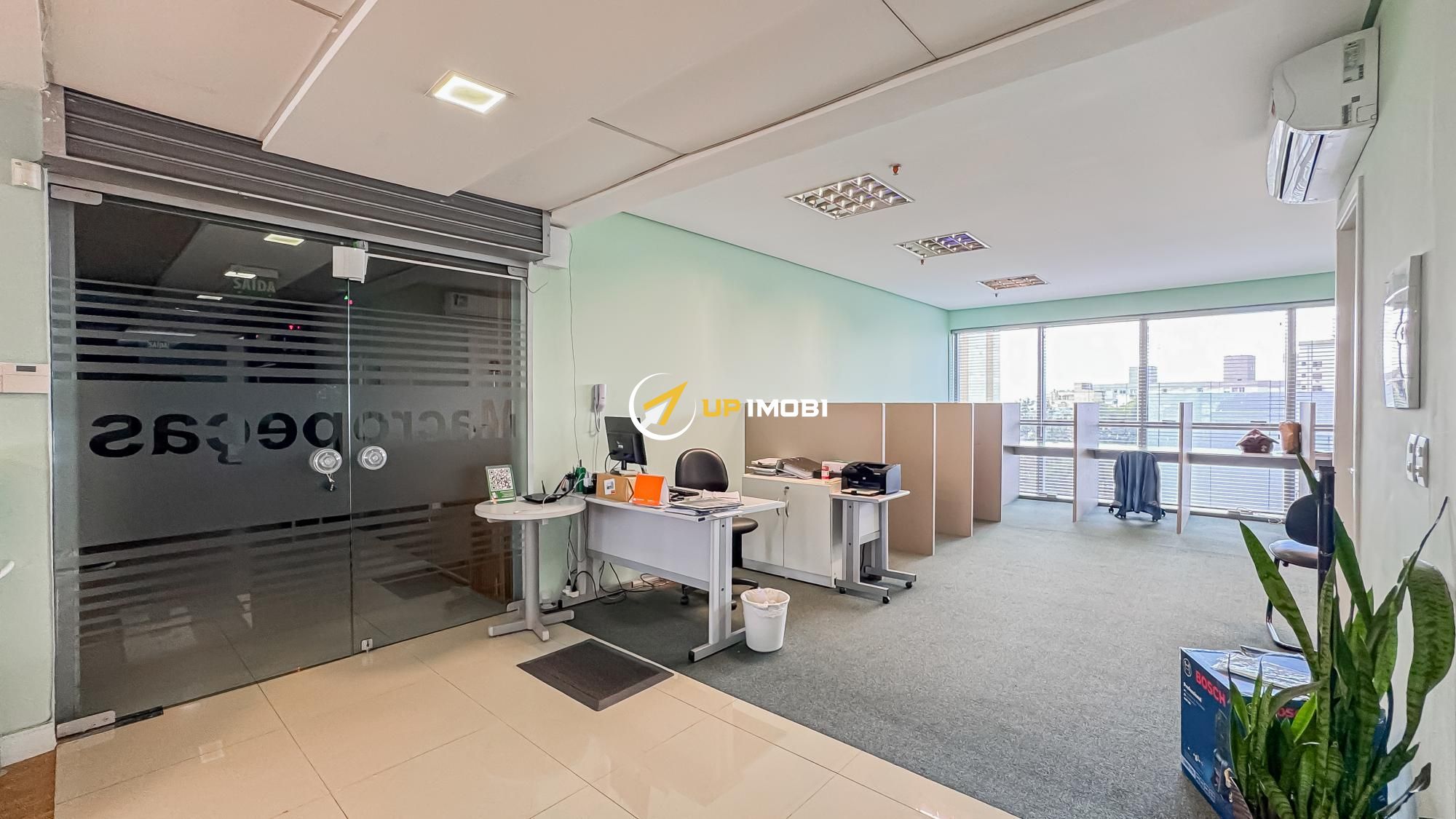 São quase 180m² privativos, formados por 4 salas, 4 banheiros e 4 vagas