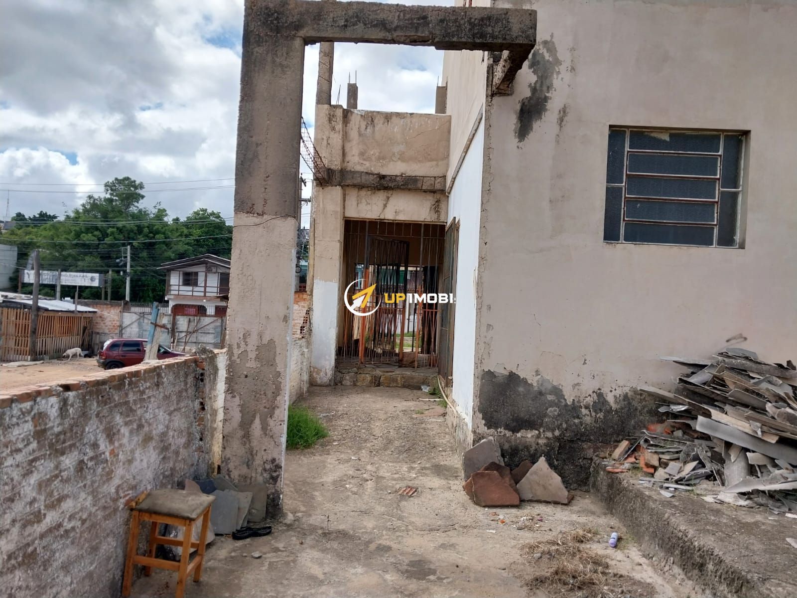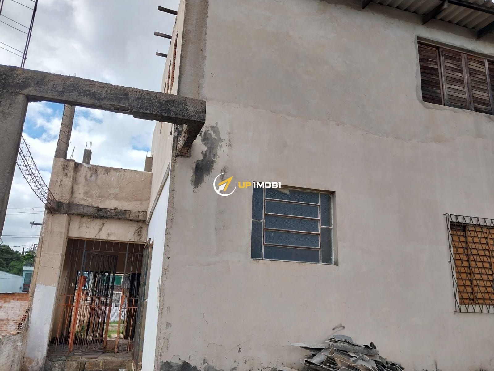 Prédio em cima no local, desocupado e pronto para ser demolido.
