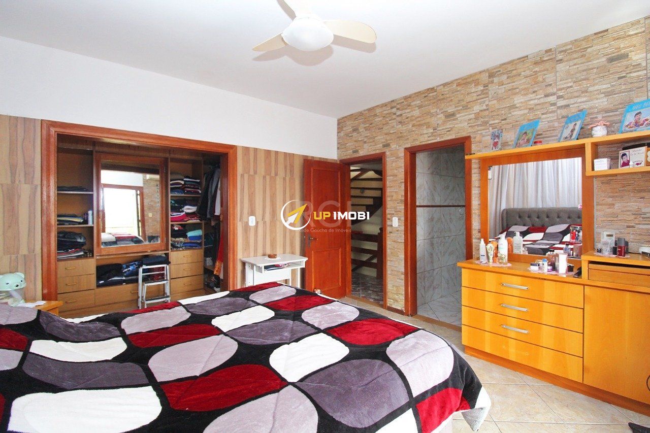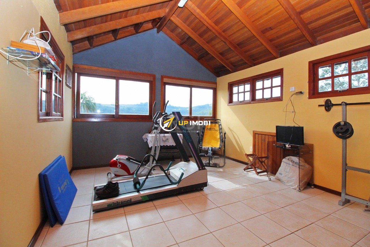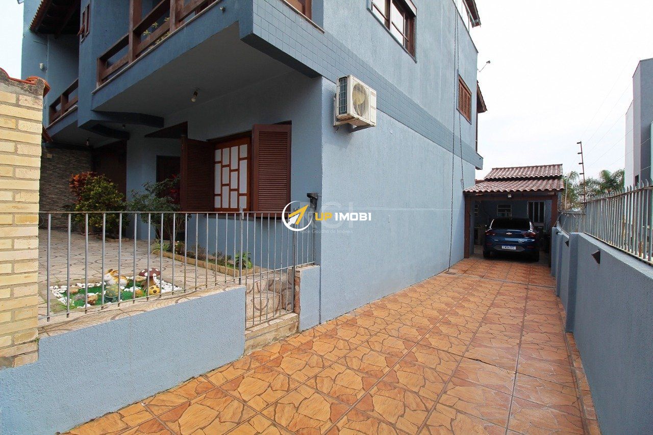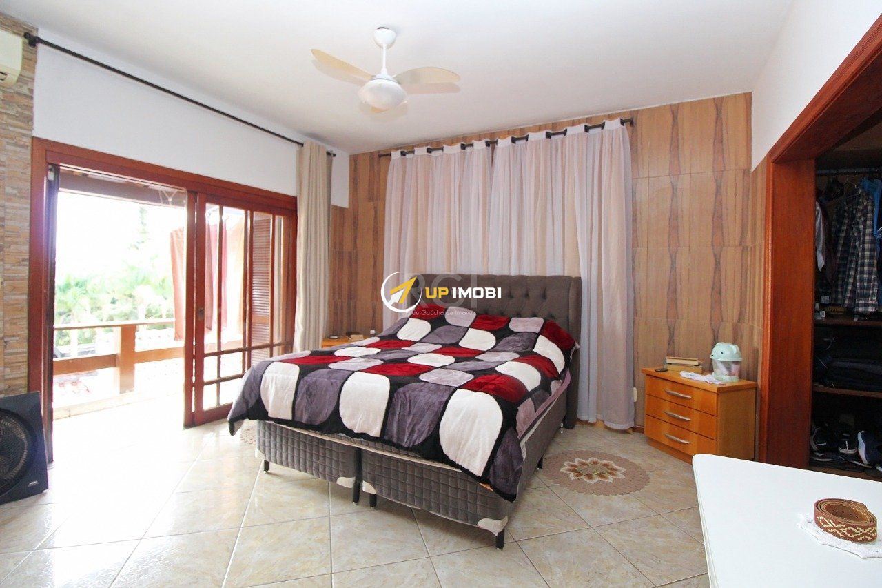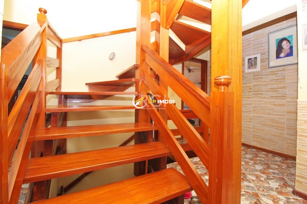 Casa grande com 3 pavimentos , sendo na área térrea com cozinha grande , e sala de jantar, no primeiro andar 3 quartos e 3 banheiros sendo 1 suíte, sala de tv , segundo piso , para área social com amplo espaço para churrasqueira , lareira salão de inverno, e espaço de academia, e uma vista arborizada e para o Guaíba.