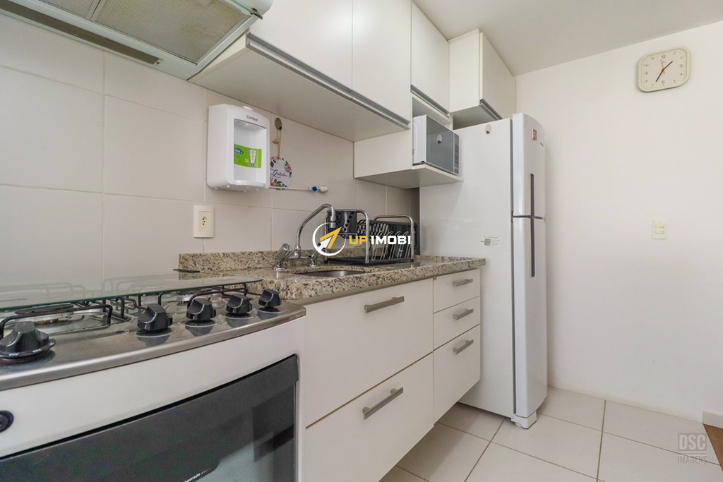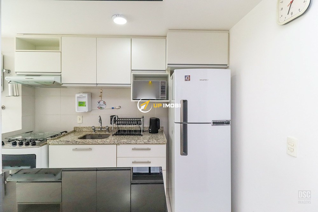 O living se divide em 2 ambientes aconchegantes e sacada integrada com churrasqueira. A cozinha americana, mobiliada e equipada.