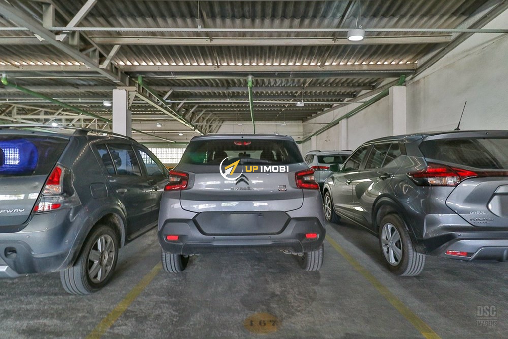A vaga de garagem coberta.