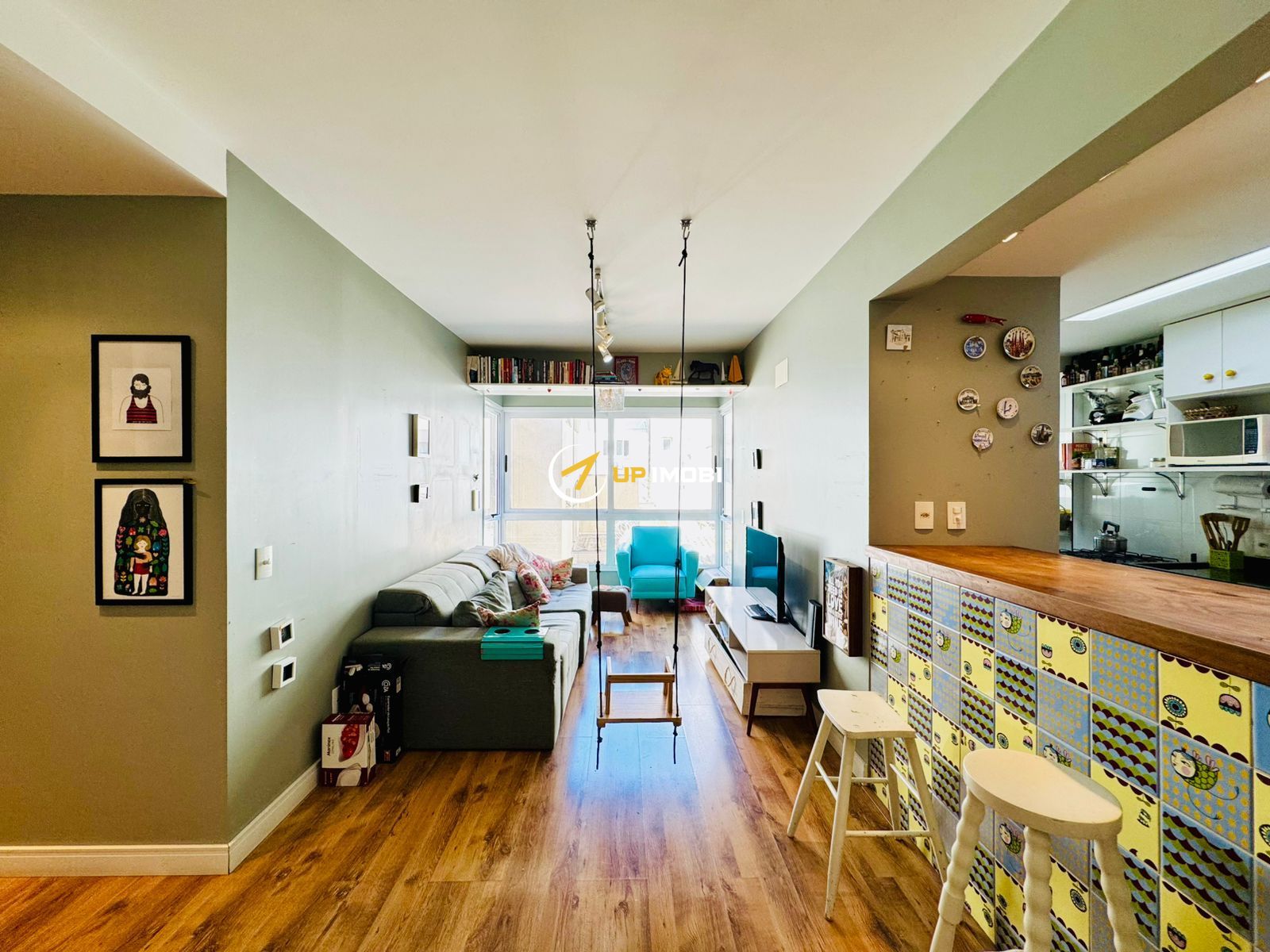 Apartamento com dois dormitórios, 68m² suite, living para dois ambientes, sacada fechada, churrasqueira, cozinha americana, area de serviço separada.