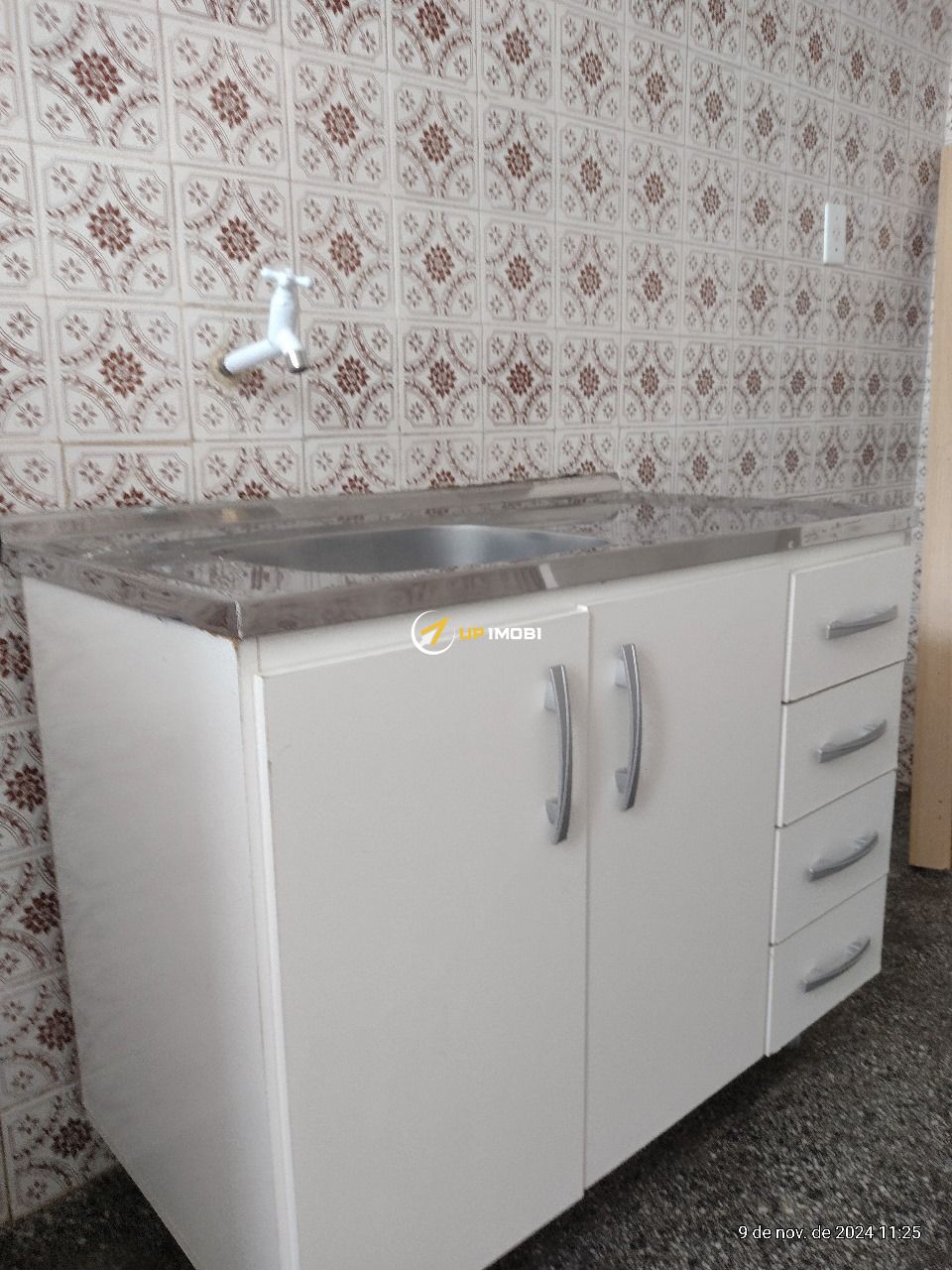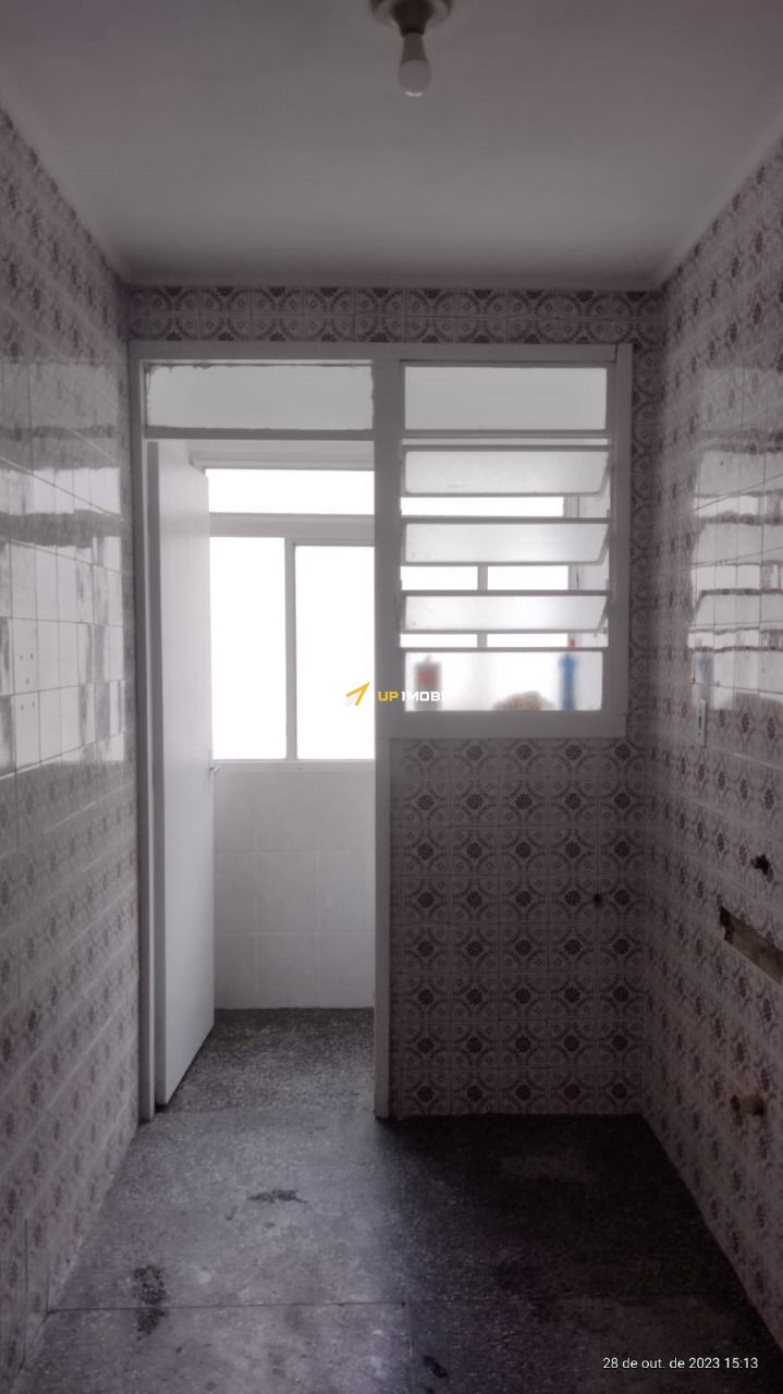 O apartamento inclui um banheiro bem iluminado e uma cozinha equipada com uma área de serviço separada, oferecendo funcionalidade e conforto.
